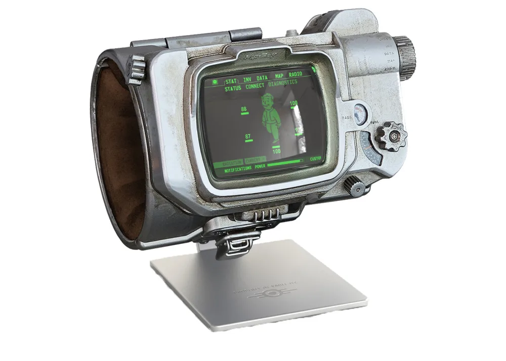Replika Pip-Boy 3000 Mk V to odlew w idealnym kształcie, z ekranem TFT LCD. Nie spodziewajcie się jednak pełnej funkcjonalności – ma on 45 różnych “scen” do wyświetlenia, a jego główna funkcja to… radio FM! Dodatkowo jest też możliwość słuchania komunikatów ze świata gry.