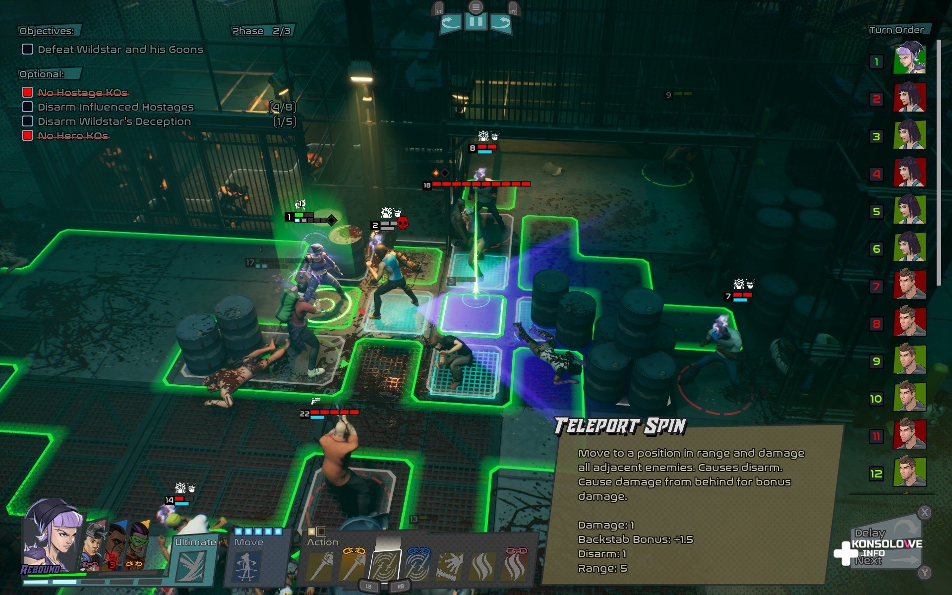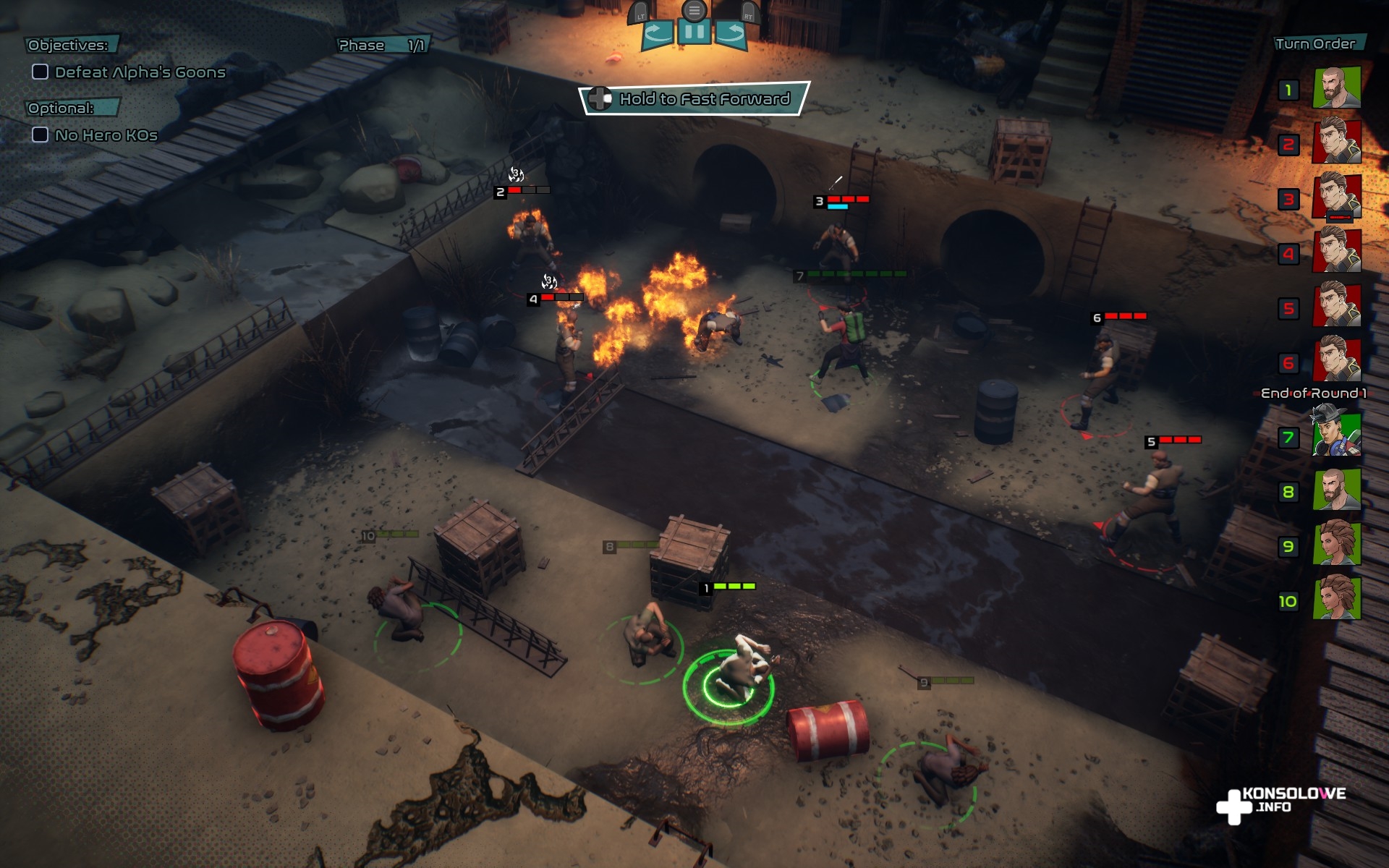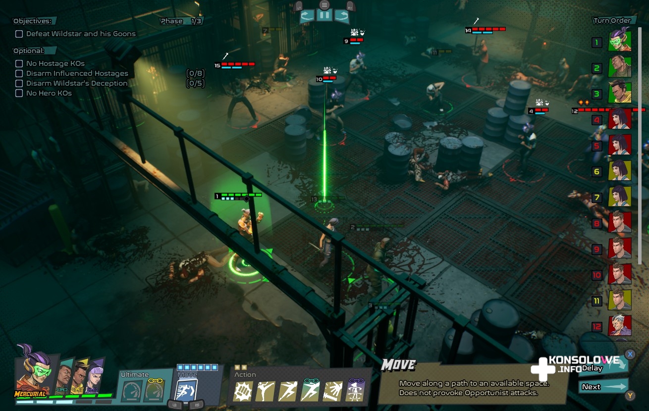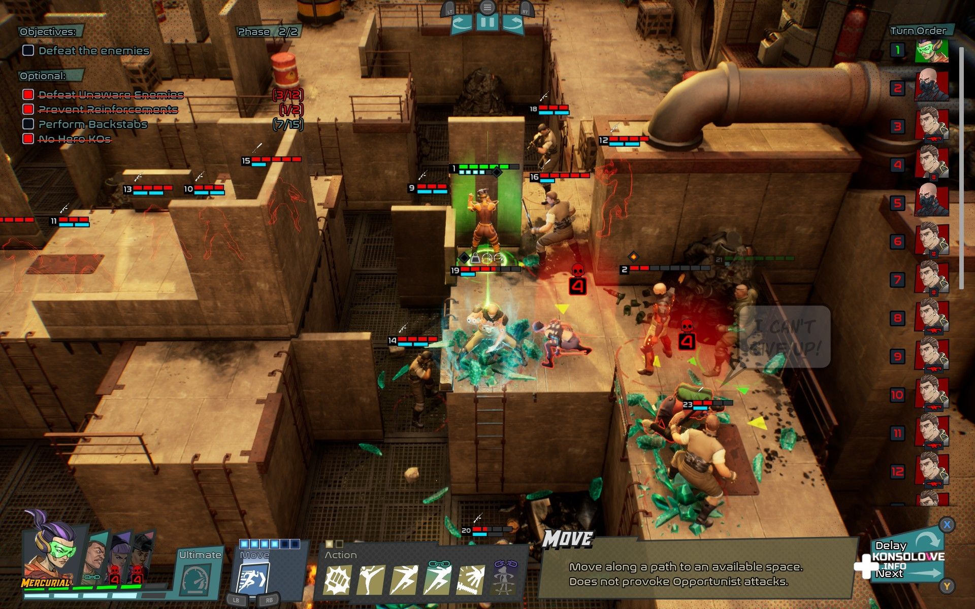 No właśnie, przeważające siły wroga. Tak samo jak, niestety, w Baldur’s Gate 3, twórcy Capes również postanowili rzucić nas bardzo często na niezwykle głęboką wodę. Na ogół kontrolujemy poczynania czwórki postaci. Zdarzą się sytuacje, w których działamy zaledwie jako jeden superbohater, ale i będą misje, w których naszych poleceń słucha nawet pięcioro postaci. Bynajmniej nie znaczy to, że starcia są łatwe. Nawet na najniższym poziomie trudności, Casual, są one w stanie stanowić niemałe wyzwanie, nierzadko nawet dość frustrujące. Początek gry jest dość łatwy. Twórcy umiejętnie wprowadzają nas w rozgrywkę i nie irytują nas żadnymi rozwiązaniami. Kiedy już jednak przejdziemy pierwszy z trzech aktów, to sytuacja diametralnie się zmieni. Jestem przekonany, że bardzo często będziecie po kilkanaście/kilkadziesiąt razy próbować wykonywać misje.