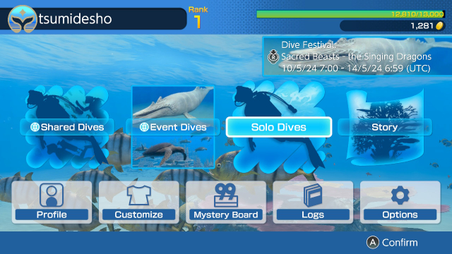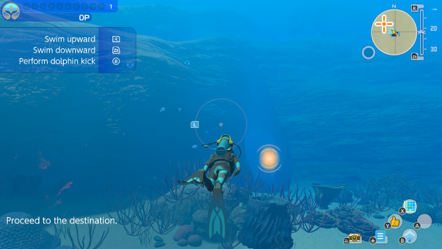 Za bardzo z nich osobiście nie skorzystałam. Od początku otrzymujemy dostęp do trzech trybów rozgrywki. W Endless Ocean Luminous otrzymujemy tryb fabularny (ratujemy koralowce) oraz nurkowanie w trybie pojedynczego gracza lub online. Skupiłam się głównie na samym nurkowaniu samotnie, bo wydaje mi się to najciekawszą opcją w tej spokojnej i wysublimowanej produkcji. Odkrywamy części mapy, skanujemy stworzenia, dowiadujemy się głównie w ogóle o ich istnieniu i płyniemy sobie spokojnie dalej. Czy chciałabym skorzystać z trybu pozwalającego na nurkowanie z innymi graczami? Nie, choć i taki tryb został dołączony do gry. Niewiele ten tryb zmienia, ponieważ rozgrywka nadal opiera się na tym samym – na pływaniu, odkrywaniu i skanowaniu. Jak już mam złapać chillout w trakcie gry, to bez innych płetw przed nosem.