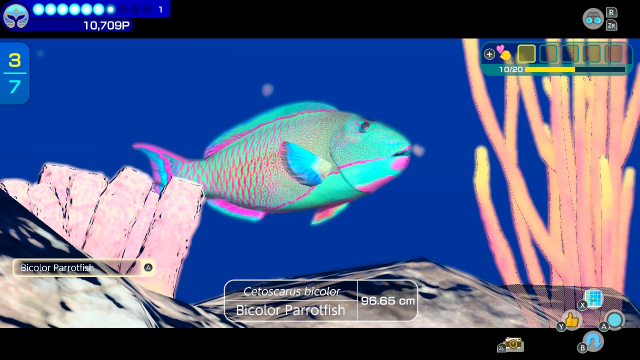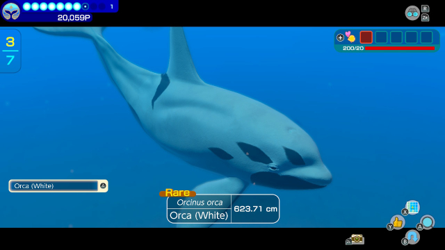 Jest ich mnóstwo, naprawdę. Za każdym razem skanujemy zwierzęta, które są podświetlone na niebiesko lub żółto i otrzymujemy w ten sposób szczegółowe informacje o ich gatunku. Mamy również okazję celować w najmniejsze i największe rybki danego gatunku. Pod wodą czeka na nas ponad 500 podwodnych istot. Nie będą to tylko rybki z ferajny i delfiny. Wymarłe i mityczne stworzenia to wręcz codzienność (jeżeli włączycie grę codziennie, np. po pracy w ramach relaksu). Naprawdę można się wiele o nich dowiedzieć, choć w tym miejscu ogromna szkoda, że w grze nie ma możliwości zmiany języka i skazani jesteśmy na angielski.