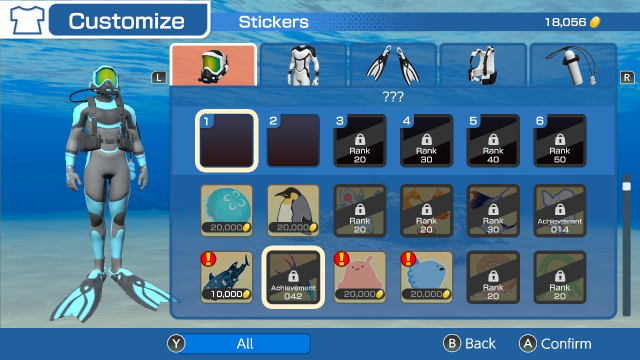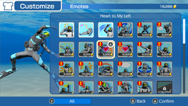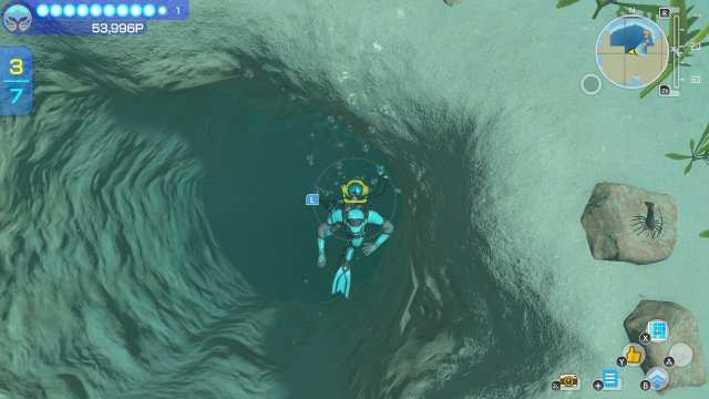 …bez ograniczeń! Tak moi drodzy, nie musicie sprawdzać, ile tlenu w butli Wam zostało. Nawet nie musicie pilnować tego, czy Wasz płetwonurek jest zmęczony – tu nie ma takich limitów. Po prostu pływamy po mapie i eksplorujemy głębiny. Deweloperzy postanowili cały czas informować o tym, ile procent lokacji oraz zwierząt udało nam się odblokować za pomocą skromnych komunikatów po jednej ze stron ekranu. Sukcesywnie odkrywamy mapę i nie ukrywam, z kilkoma miejscami mam problem, bo nie wiem jak w nie wpłynąć (ehhh te jaskinie…). Oprócz morskich zwierząt będziemy musieli odnaleźć artefakty, a od czasu do czasu znajdziemy tzw. znajdźki, które gwarantują nam zdobycie waluty. Możemy ją wykorzystać na zakup emotek lub zmianę stroju naszego płetwonurka. Głównie po to, byśmy sobie nie myśleli, że bezcelowo pływamy pod wodą.