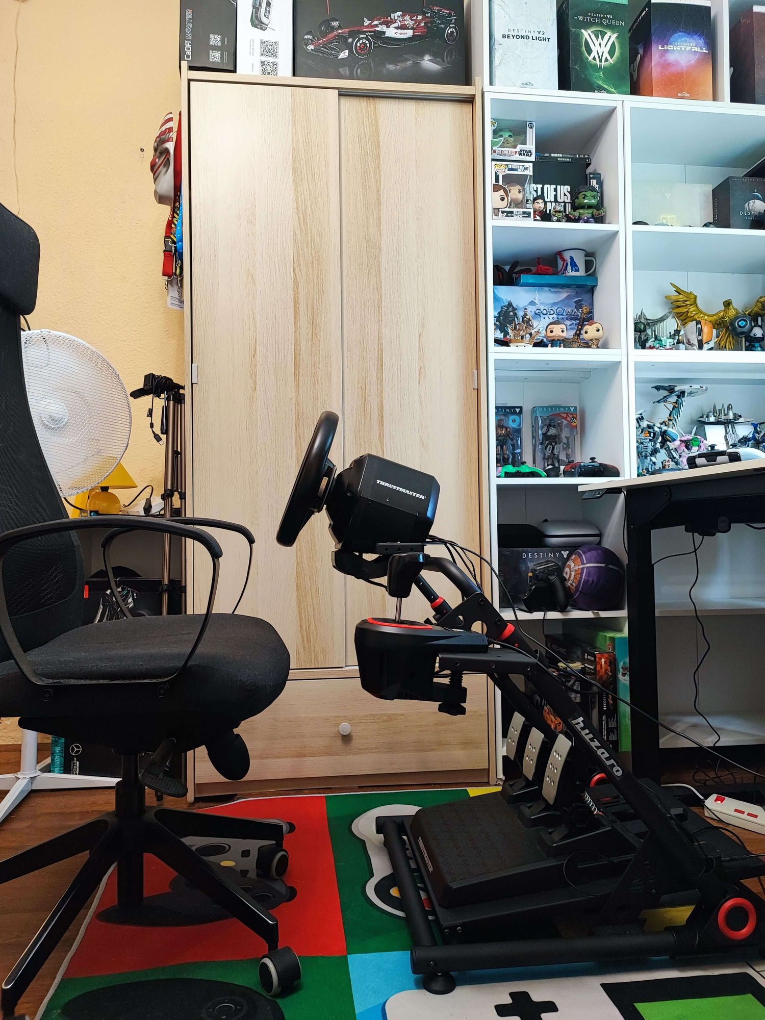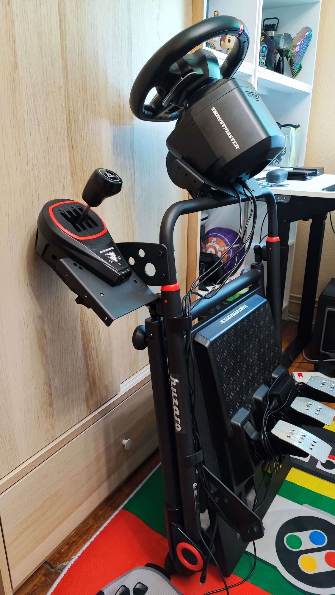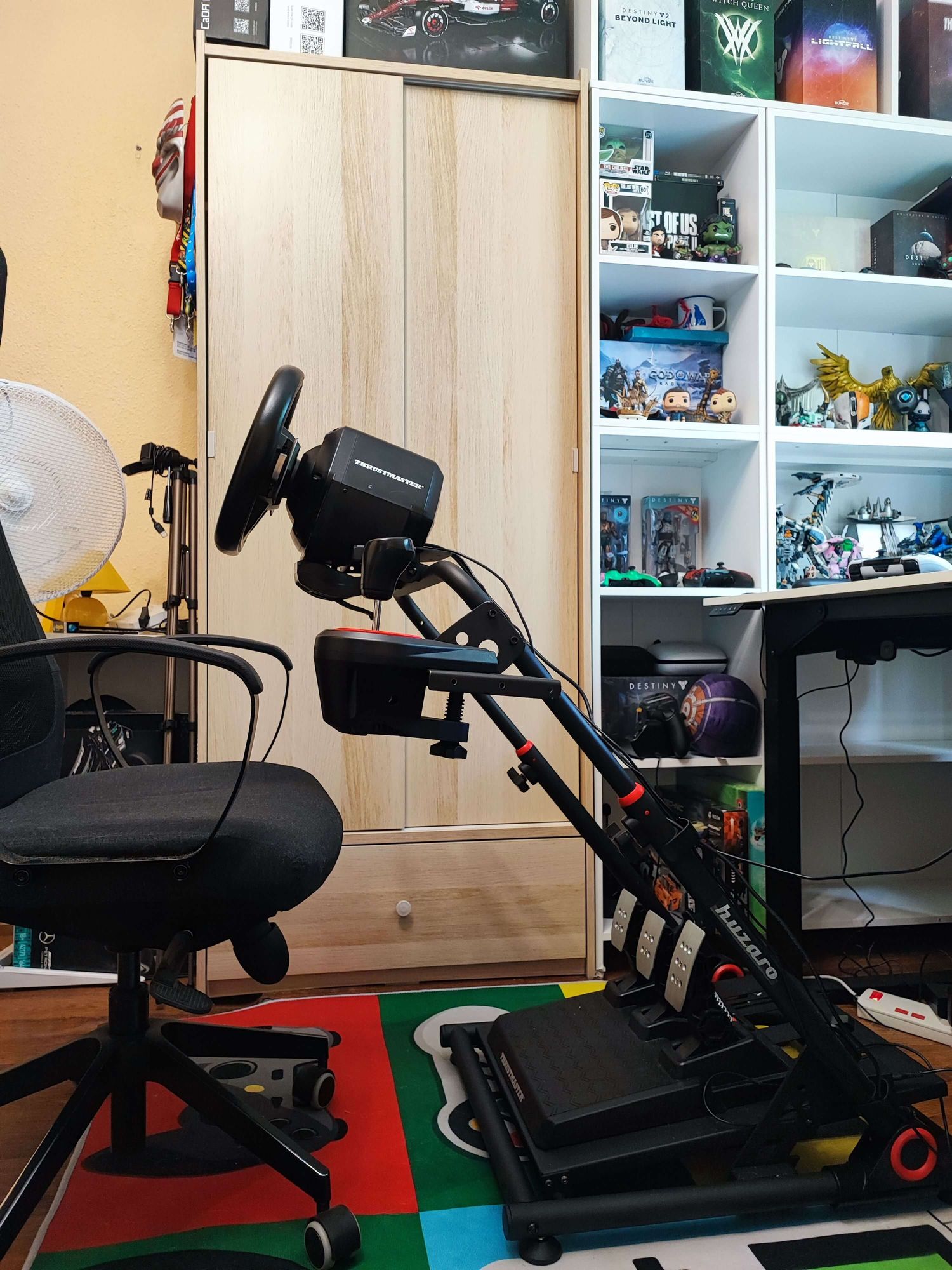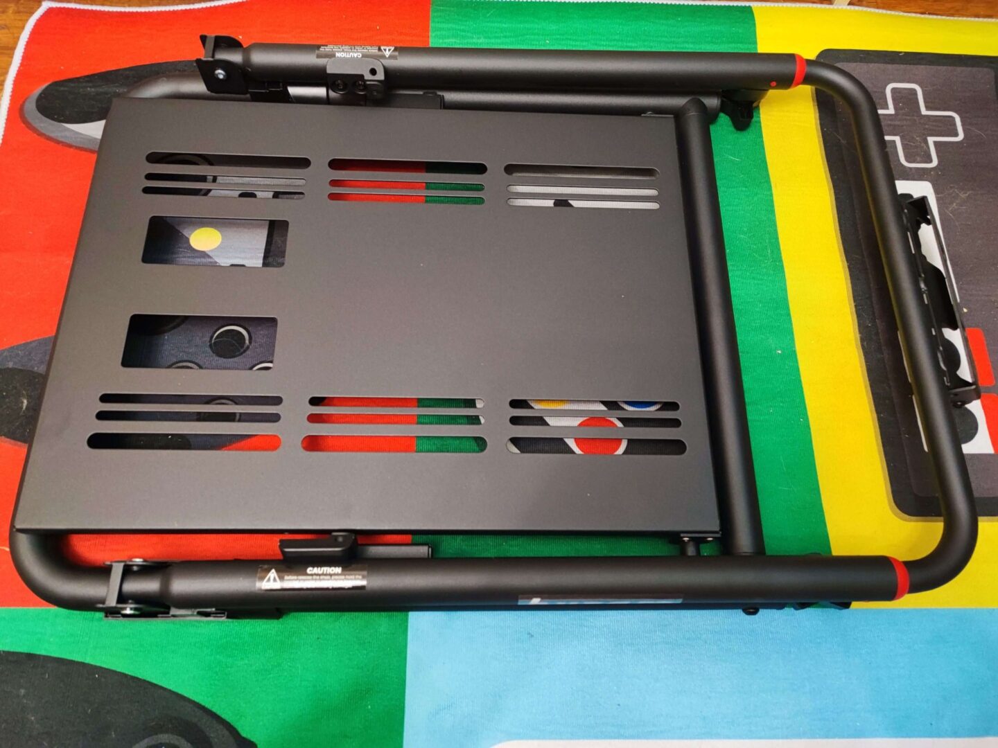 Wykonanie stojaka ze stali zamiast z aluminium ma oczywiście swoje konsekwencje, ale też i zalety. Zaletą jest oczywiście duża wytrzymałość konstrukcji oraz stabilność, która nie zawiedzie nas nawet podczas intensywnego driftowania. Konsekwencje, to oczywiście duża waga zestawu, dziecko stojaka z zamontowanym wyposażeniem nie przeniesie. Sam muszę użyć trochę siły, aby tego dokonać. Jednak jest to zdecydowanie wygodniejszy proces niż wyciąganie za każdym razem kierownicy z szafy i podłączanie tych wszystkich kabli na nowo. W przypadku złożenia stojaka i odstawienia na bok wystarczy po prostu dwie śruby odkręcić (przypominające „motylka”). Złożony zestaw bez trudu zmieści się też pod łóżkiem lub za szafą.