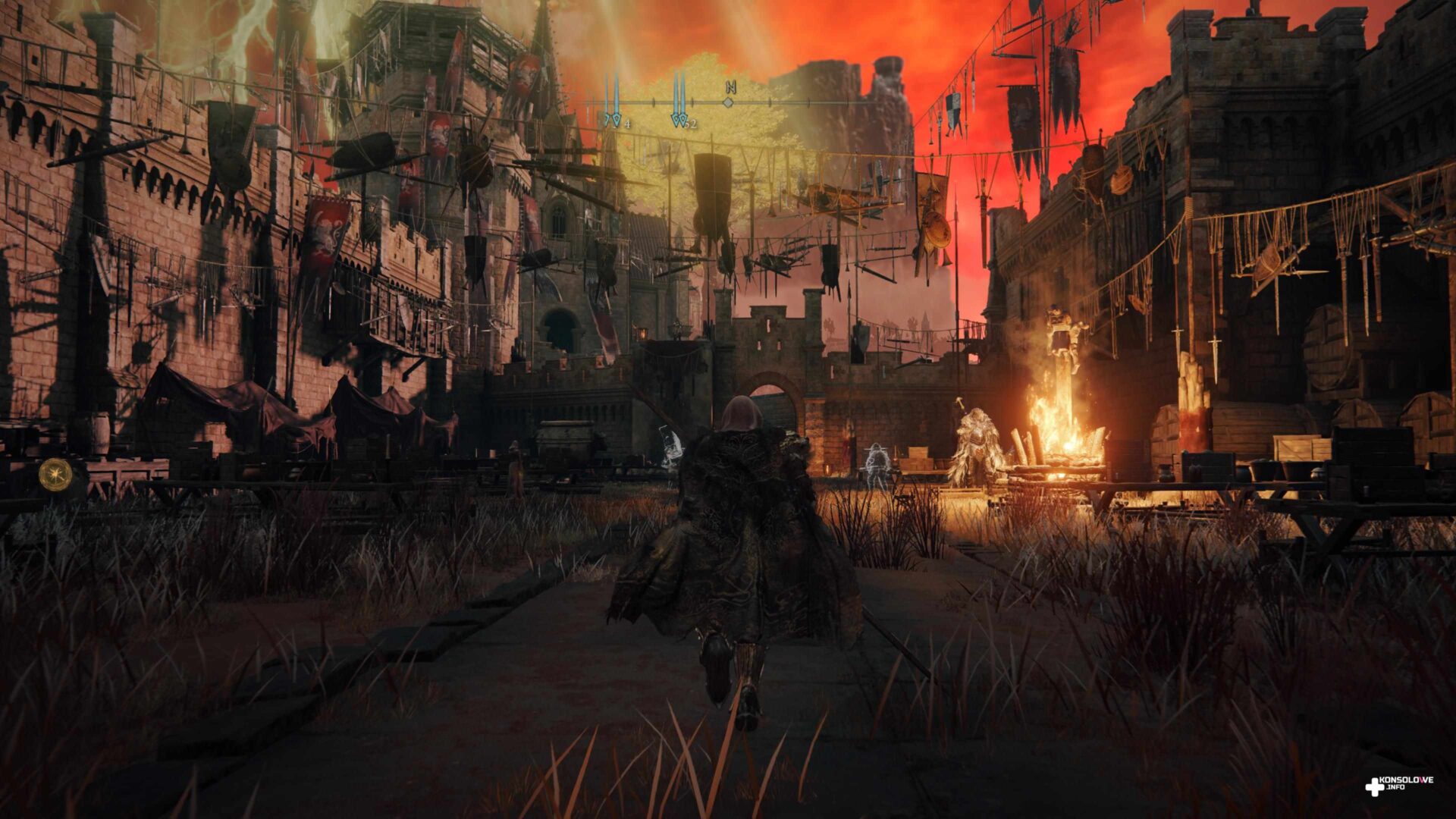 Przed samym zamkiem znajdują się miejsce łaski (Nieprzekraczalny Wielki Most), a niedaleko od tego miejsca, na prawo, umieszczono portal. Korzystamy z niego, po czym przenosimy się do Zamku. Następnie wchodzimy po schodach i udajemy się na pobliski dziedziniec. Tu możemy porozmawiać z wieloma osobami, a przede wszystkim z postacią niezależną na górze, na lewo od głównej bramy. Mówimy, że jesteśmy gotowi do walki, po czym przechodzimy na zewnątrz. Tam znajdziemy windę, która zabierze nas do miejsca, w którym czeka na nas portal. Po skorzystaniu z niego przeniesiemy się na pole, gdzie zmierzymy się z Radahnem. Po jego pokonaniu powinniśmy móc wreszcie przenieść się do świata Shadow of the Erdtree.