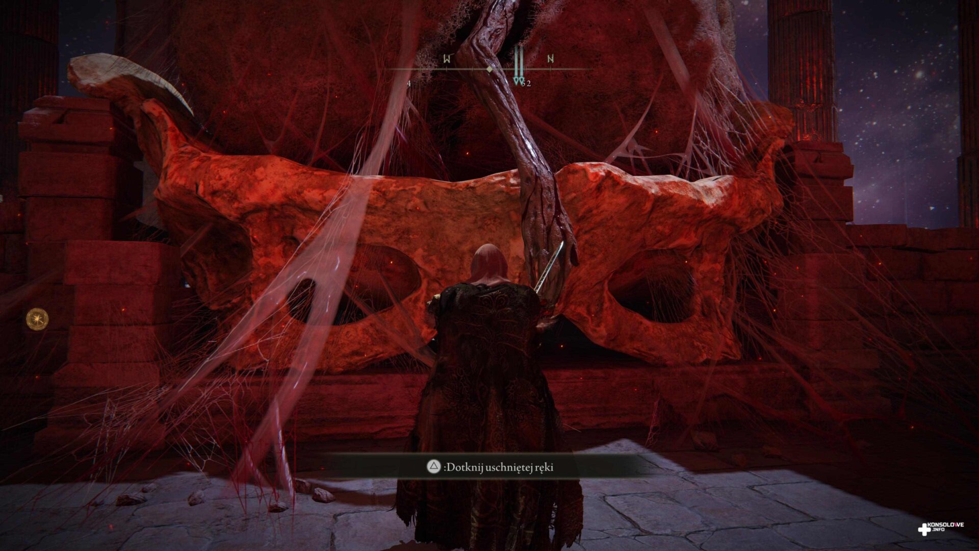 Teraz możemy skorzystać z Wielkiej Windy Rold, ale pamiętajcie, żeby krzyżakiem wybrać opcję skorzystania z sekretnego medalionu. Przeniesie to nas do podobnej, aczkolwiek innej śnieżnej lokacji. Tu powinniśmy kierować się w miejsce zaznaczone na mapie i zgładzić atakującego nas najeźdźcę. Jeżeli uda się nam go załatwić, to aktywujemy portal. Skorzystamy z niego, aby przenieść się do Pałacu Mohgwynów. Znalezienie potrtalu powinien Wam ułatwić powyższy film.