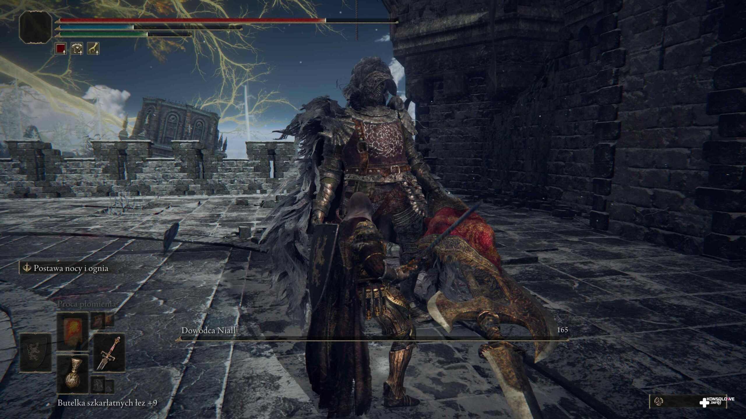 W Zamku Sol zmierzymy się z bardzo wymagającym przeciwnikiem – Dowódcą Niall. Rekomenduję pozbycie się najpierw jego dwóch pomagierów, a następnie skupienie ataków na Niallu. Warto zauważyć, że uniki w lewo są najbardziej skuteczne. Po pokonaniu tego przeciwnika możemy skorzystać ze znajdującej się za nim drabiny, a na szczycie znaleźć upragnioną lewą połówkę medalionu.