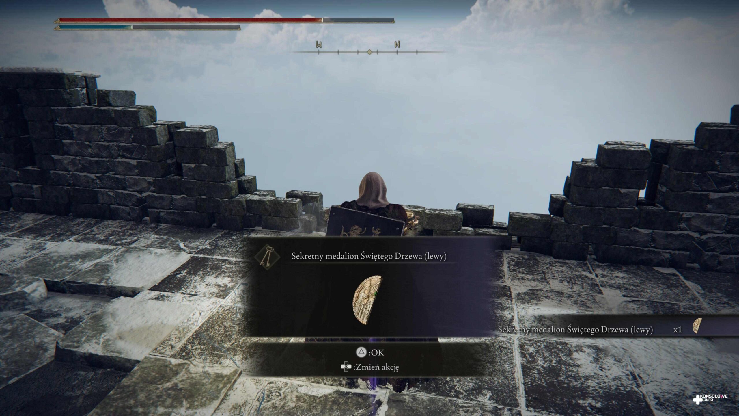 Natomiast lewa połówka medalionu znajduje się w Zamku Sol. Budowla ta zlokalizowana jest w północnej części Szczytu Góry Olbrzymów. Aby tam się dostać, konieczne jest posiadanie dwóch połówek innego medalionu, który również wykorzystamy przed Wielką Windą Rold. Wyjaśnię teraz, jak wejść w posiadanie tych właśnie połówek. Przede wszystkim powinniśmy zapewnić sobie wstęp do stolicy Ziem Pomiędzy, Leyndell. Wobec tego kierujemy się w stronę zewnętrznych murów, które z pewnością bez problemu dostrzeżecie po otwarciu mapy. Udajemy się na ich wschodnią część, gdzie znajdziemy Strażnika drzewa – wielkiego przeciwnika na koniu. Walka z nim może stanowić pewne wyzwanie. Na szczęście tuż przy blokowanej przez tego oponenta bramie jest Posąg Mariki. Wobec tego możemy bardzo blisko się odrodzić w razie niepowodzenia.