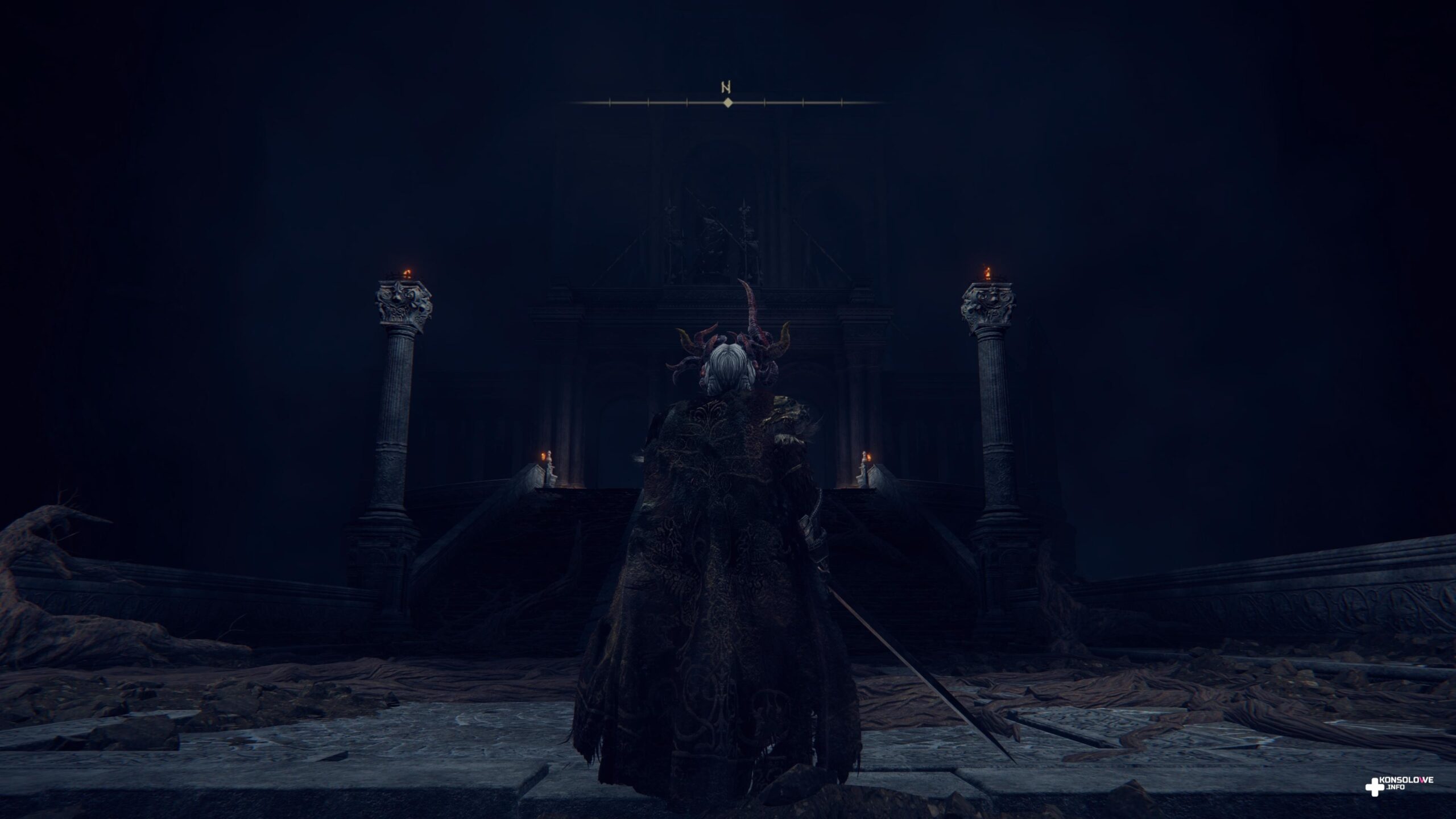 Przed samym zamkiem znajdują się miejsce łaski (Nieprzekraczalny Wielki Most), a niedaleko od tego miejsca, na prawo, umieszczono portal. Korzystamy z niego, po czym przenosimy się do Zamku. Następnie wchodzimy po schodach i udajemy się na pobliski dziedziniec. Tu możemy porozmawiać z wieloma osobami, a przede wszystkim z postacią niezależną na górze, na lewo od głównej bramy. Mówimy, że jesteśmy gotowi do walki, po czym przechodzimy na zewnątrz. Tam znajdziemy windę, która zabierze nas do miejsca, w którym czeka na nas portal. Po skorzystaniu z niego przeniesiemy się na pole, gdzie zmierzymy się z Radahnem. Po jego pokonaniu powinniśmy móc wreszcie przenieść się do świata Shadow of the Erdtree.