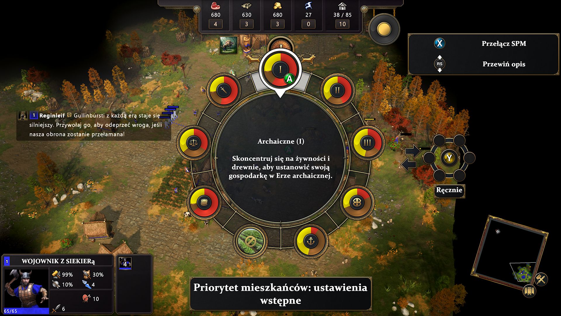 Jeżeli graliście już na kontrolerze w Age of Empires II: Definitive Edition lub Age of Empires IV, to w „Mitologii” poczujecie się jak ryba w wodzie. Jedną z innowacji w recenzowanej produkcji jest tak zwany system priorytetów mieszkańców naszego miasta. Możemy faktycznie określić, co robią jego obywatele. Nie musimy klikać pojedynczego cywila, wydajemy jedno polecenia dla wszystkich z konkretnym procentem na podział ról przy zbieraniu żywności, drewna lub złota. Dzięki temu możemy bardziej skoncentrować się na budowaniu konkretnych budynków oraz szkoleniu wojska. To świetne rozwiązanie, które z pewnością lepiej pozwoli zacząć nowym graczom, weterani raczej nie muszą z niego skorzystać.