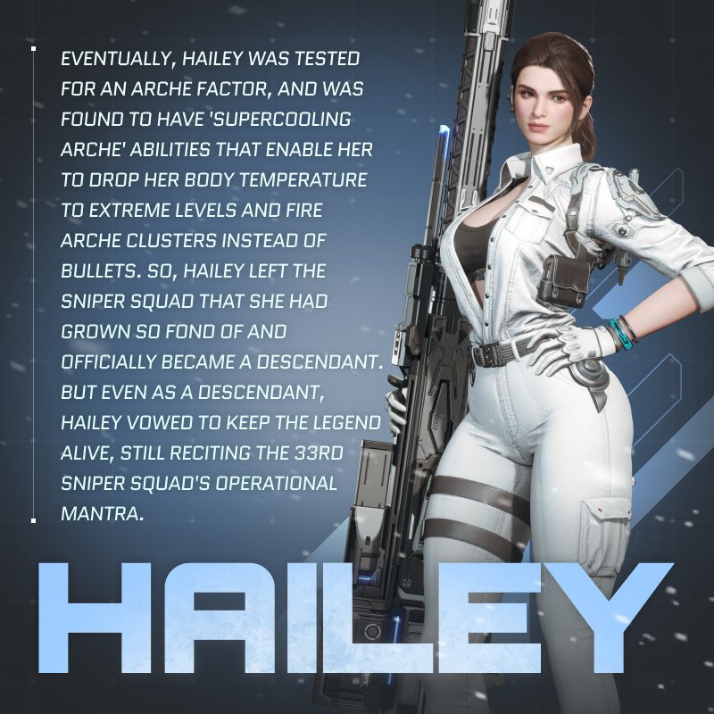 Zwiastun ma dwa kluczowe momenty. Na samym początku widzimy Hailey, nową potomkinię, wyposażoną w przeciwmaterialny karabin snajperski. Jego naboje mają temperaturę poniżej zera. Podobnie jak Viessa, nowa bohaterka będzie skupiona wokół żywiołu lodu. Głównymi atutami Hailey będą wysokie, precyzyjne obrażenia w czułe punkty przeciwników.