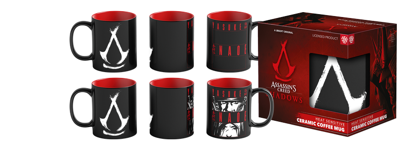 Oferta obejmuje również unikalne kubki termoaktywne inspirowane najnowszą grą z serii Assassin’s Creed: Shadows. Kubki dostępne będą od października i wykonane są z wysokiej jakości ceramiki oraz pokryte zostały czarną powłoką, która pod wpływem ciepła ujawnia wizerunki głównych bohaterów – Naoe i Yasuke. To doskonały prezent dla miłośników serii, który przypomina o epickich przygodach w grze.