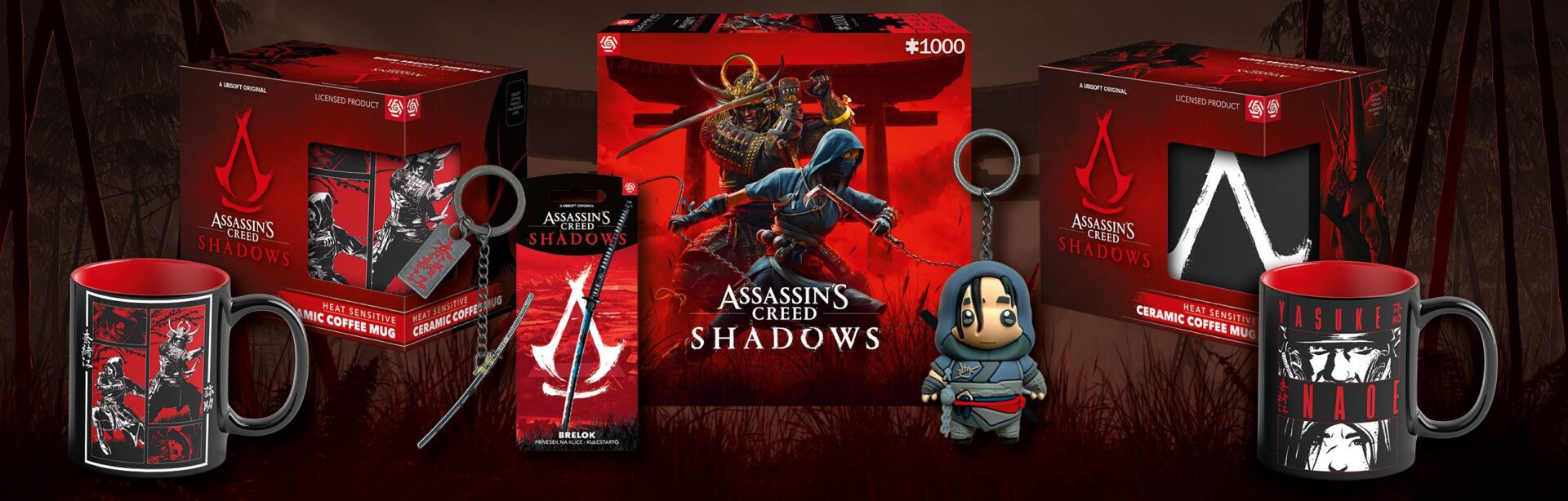 W ofercie znalazły się puzzle z postaciami Naoe, zwinnej wojowniczki ninja, oraz Yasuke, pierwszego afrykańskiego samuraja. Skarpetki z motywami z gry oraz breloki, takie jak Katana Naoe, pozwalają fanom serii na zabranie kawałka świata Assassin’s Creed zawsze ze sobą.
