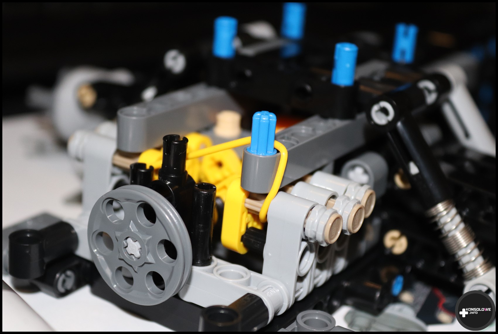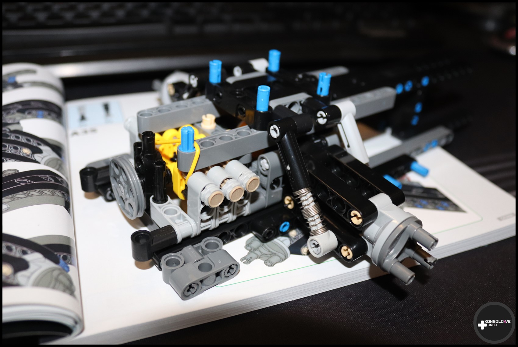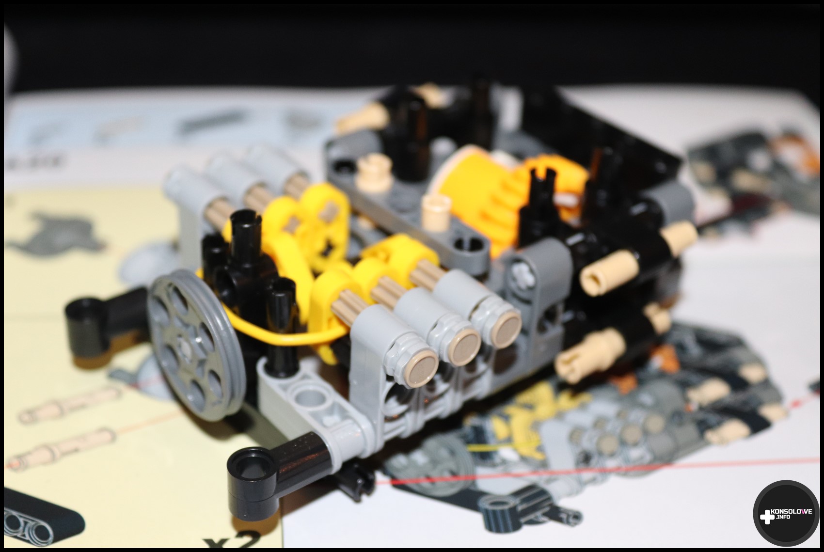 W pierwszych etapach konstruowania pojazdu nie zobaczycie niczego, co przypomina właściwą bryłę. Na to dopiero przyjdzie kolej. Najpierw CaDA postawiła na budowanie silnika i muszę przyznać, że jest to niezwykle zaawansowany element pojazdu. W modelach LEGO nie widziałem tak rozbudowanych silników, co oczywiście przemawia na korzyść CaDA RUF GT C63006W. Widzimy poruszające się tłoki podczas pracy silnika i jest to niesamowicie satysfakcjonujący widok. Klocki wchodzą pewnie, aczkolwiek nierzadko należy użyć nieco siły. Nie na tyle, aby obawiać się o uszkodzenie klocków, ale jednak gdzieniegdzie trzeba nieco mocniej docisnąć elementy. Nie jest to w moich oczach wada, natomiast warto to zaznaczyć. Do silnika przyczepimy dalszą część pojazdu, a więcej na ten temat dowiecie się z poniższego akapitu.