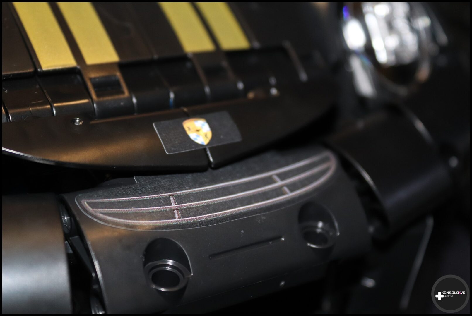 Jednym z ostatnich kroków jest złożenie maski pojazdu, pod którą schowamy silnik. Notabene, jego pracę możemy obserwować po podniesieniu tej maski. Jednak co do samego procesu dołączenia jej do reszty samochodu mam pewne zastrzeżenia. Dwa bolce, które musimy wcisnąć w gniazda są niesamowicie ruchome. Przez to nie ukrywam, że końcówka budowania CaDA RUF GT 63006W wywołała u mnie niemałą frustrację. Na szczęście w końcu udało mi się dopasować elementy. Ostatnim krokiem było naklejenie kilku naklejek. No i muszę stwierdzić, że w mojej ocenie szpecą one ten model. Naklejki (oprócz tych pod kierownicą) są mało wyraźne i mają tendencję do szybkiego gniecenia się. Nie uważam bynajmniej, że nie warto zainwestować w ten model, aczkolwiek ma on swoje wady, na które należy zwrócić uwagę.