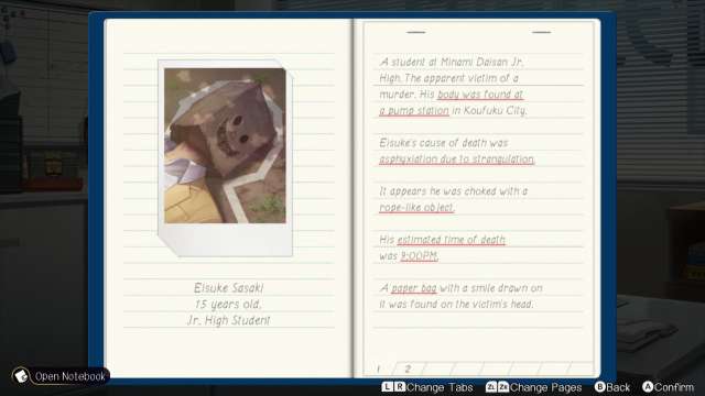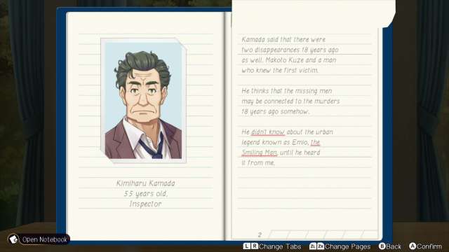 Emio: The Smiling Man – Famicom Detective Club to kolejna odsłona serii, która kontynuuje tradycję detektywistycznych przygód. Gracze wcielają się w śledczego, którego zadaniem jest rozwiązanie zagadki kryminalnej. Podczas gry eksplorujemy różnorodne lokacje, badamy miejsca zbrodni, zbieramy dowody i rozmawiamy z postaciami, które mogą dostarczyć cennych informacji i wskazówek. Przy tym całość polega na czytaniu, zapamiętywaniu informacji (czego ja czasem nie robiłam), rozmyślaniach i zadawaniu pytań, by następnie zebrać najważniejsze informacje w notesiku i kontynuować śledztwo.