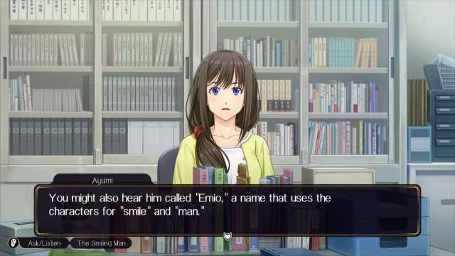 Historia w Emio: The Smiling Man rozwija się naprawdę bardzo powoli, stopniowo ujawniając prawdę w 11 rozdziałach i ok. 12 godzinach rozgrywki. Choć niektóre zagadki pozostają nierozwiązane aż do epilogu, co znacznie w ostatecznym rachunku spowalnia tempo narracji, gra stara się wprowadzić element interaktywności. Po każdym rozdziale pojawia się quiz, który sprawdza, czy gracz uważnie śledził fabułę i dialogi. To miły dodatek, który zachęca do aktywnego uczestnictwa w grze i pomaga lepiej wczuć się w rolę detektywa. Niestety ze względu na ilość kwestii dialogowych, konieczność żonglowania pomiędzy zadawaniem pytań, rozmyślaniem, a przeglądaniem otoczenia, wiele rzeczy mi umykało. Przyznaję, że im dłużej napotkane postacie się wypowiadały, tym częściej po prostu klikałam dalej, by to przyspieszyć. Tym samym pojawiał się problem właśnie na podsumowaniach, związany już nie tylko z barierą językową, ale samą dynamiką rozgrywki.