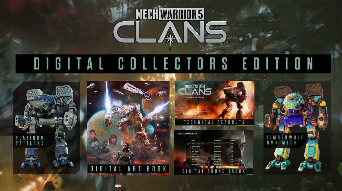 Dodatkowo twórcy zapowiedzieli Digital Collector’s Edition. W jej skład wchodzą ekskluzywne elementy w grze, takie jak wzory „Platinum Mech” i omnimech „Timber Wolf WAR”. Edycja ta zawiera również 36-utworową ścieżkę dźwiękową oraz 70-stronicowy artbook.