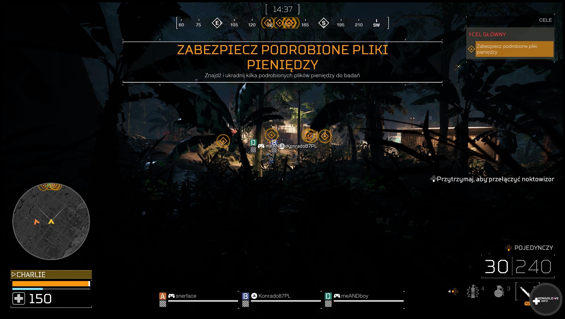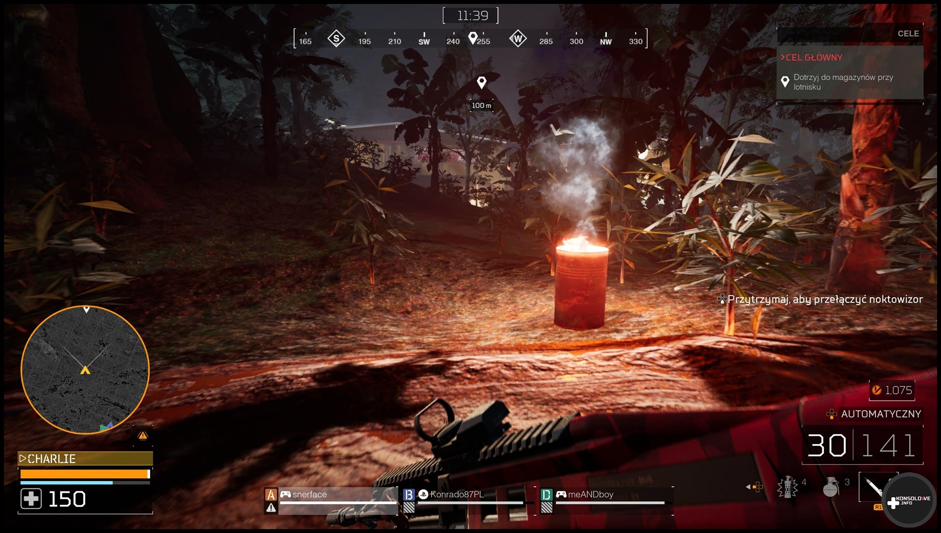 Nie mogę też nie wspomnieć o wadzie, o której pisałem już w recenzji. Chodzi mi mianowicie o wersję językową głosów. Ponownie nie można wybrać osobno angielskich głosów postaci w zestawieniu z polskimi napisami. Wybierając jedną wersję językową, ustawia się jednocześnie taka wersja głosów oraz napisów. Polski dubbing jest też dość oszczędny jeśli chodzi o zróżnicowanie wypowiadanych kwestii. Grając w ten tytuł, Konrad i ja często słyszeliśmy informację jednego z żołnierzy o pobiciu nowego rekordu w około minutowo-dwuminutowych odstępach. Po pewnym czasie zaczyna to śmieszyć, a na pewno nie taki był cel dubbingu.