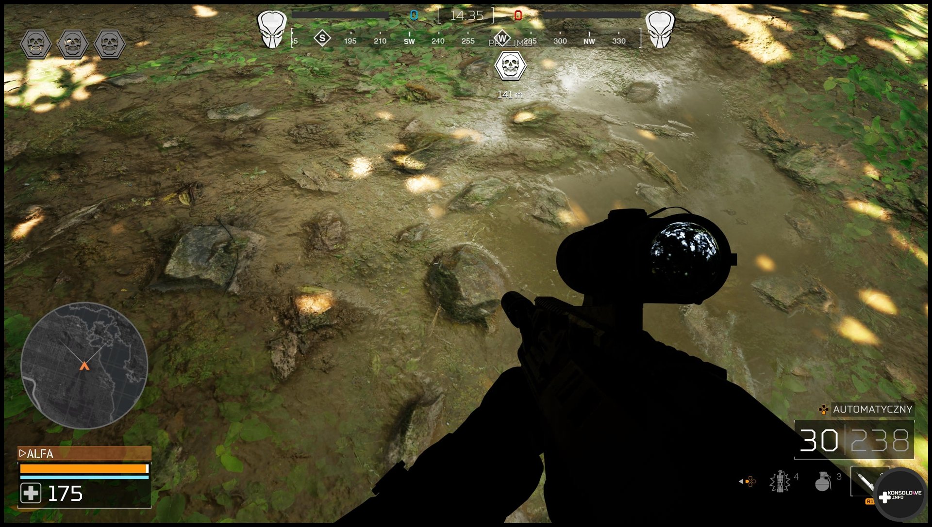 PlayStation 5 to oczywiście konsola o niezaprzeczalnie większej mocy niż PS4. Co do tego nie powinno być wątpliwości. W związku z tym należałoby też tę moc odpowiednio spożytkować i… tego niestety brakuje Predator: Hunting Grounds na PS5. Jasne, gra działa w 60 klatkach na sekundę – na ogół. Mimo oprawy wizualnej, która w moim przekonaniu nie zachwyca, tytułowi zdarza się gubić FPS-y. Zaznaczam, że nie ma co liczyć na wybór między Wydajnością, a Jakością. Gra oferuje tylko jeden tryb działania i nie mamy na niego najmniejszego wpływu. Podobnie jak na wątpliwą stabilność kodu. Przez pierwsze 20 minut gra wywaliła mi się do głównego menu konsoli 2 razy. Problem ten na szczęście nie powtórzył się przez kolejne godziny, aczkolwiek niesmak pozostał. Utrzymał się też po wczytaniu się w komunikaty.