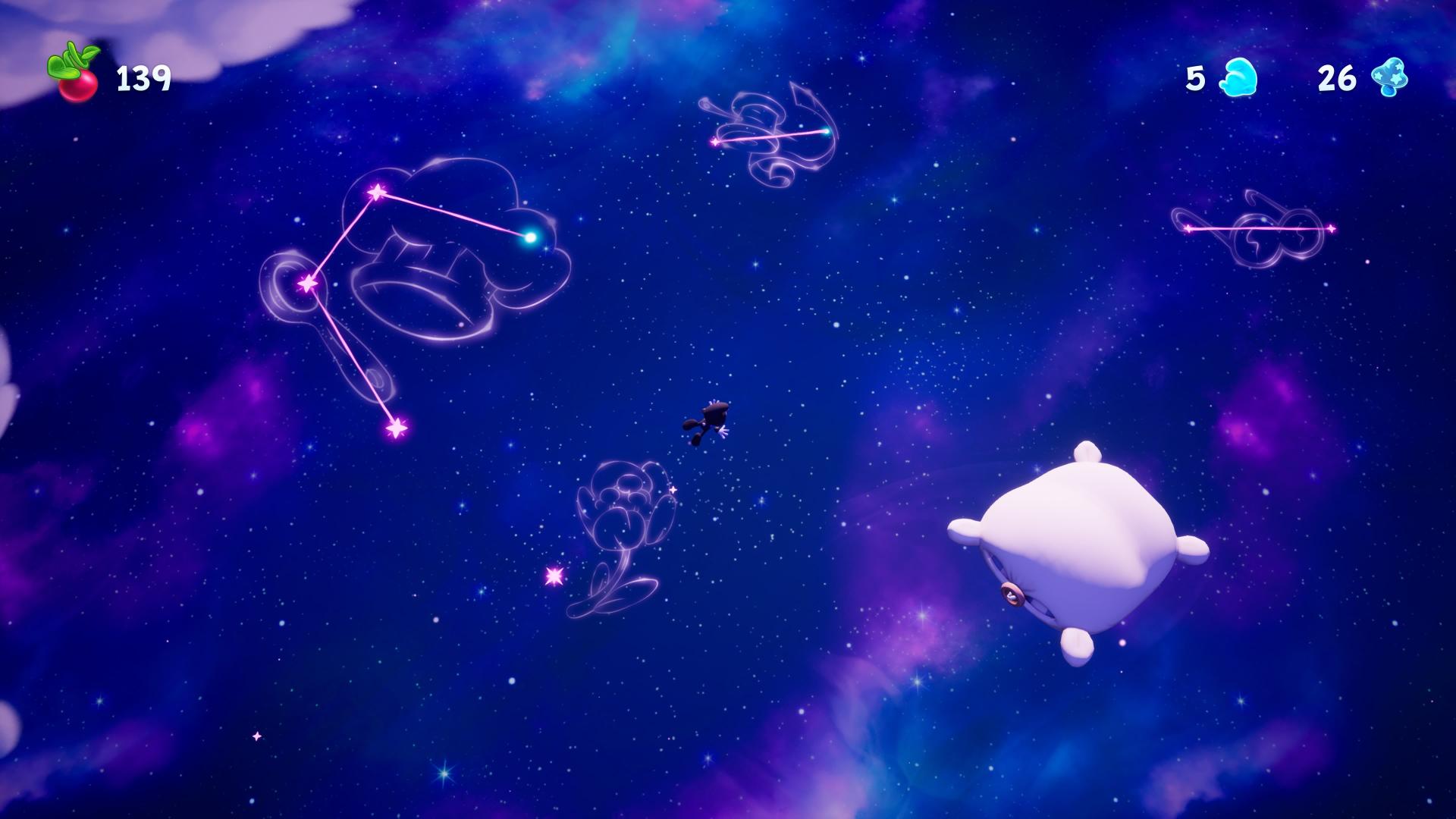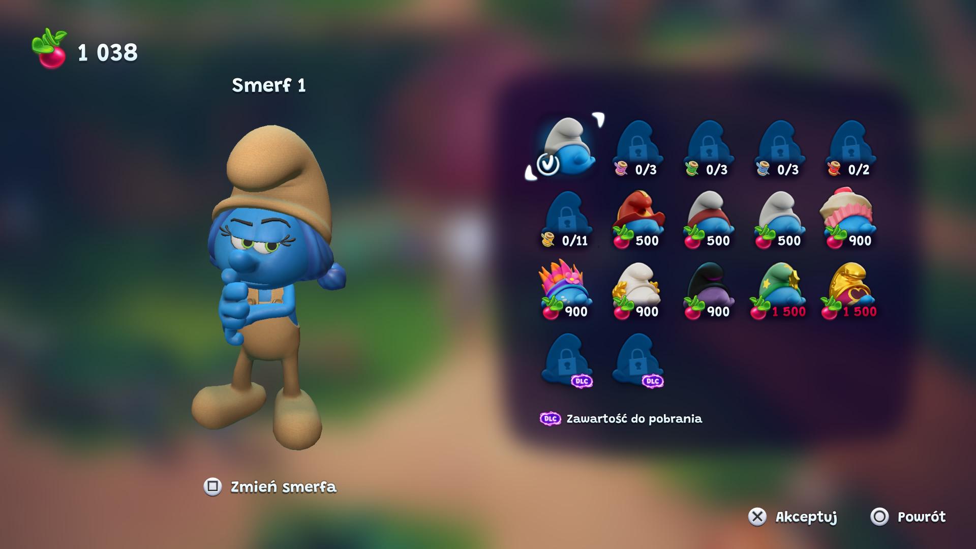 Jak to w platformówkach bywa, również w The Smurfs: Dreams mamy co zbierać. Główną walutą są wisienki – tak, tak je nazywam, od samego początku. Dzięki nim możemy odblokowywać skórki dla naszego wybudzającego Smerfa. Oprócz nich mamy także niebieskie Kosmiczne Grzyby, również niezbędne do odblokowywania skórek czy też dodatkowego poziomu w Konstelacji. Wybudzenie każdego Smerfa skutkuje uzyskaniem również Smerfowej odznaki w liczbach. Zbieramy także ukryte szpulki z nićmi, również służące do wymiany, jednak to nie wszystko.