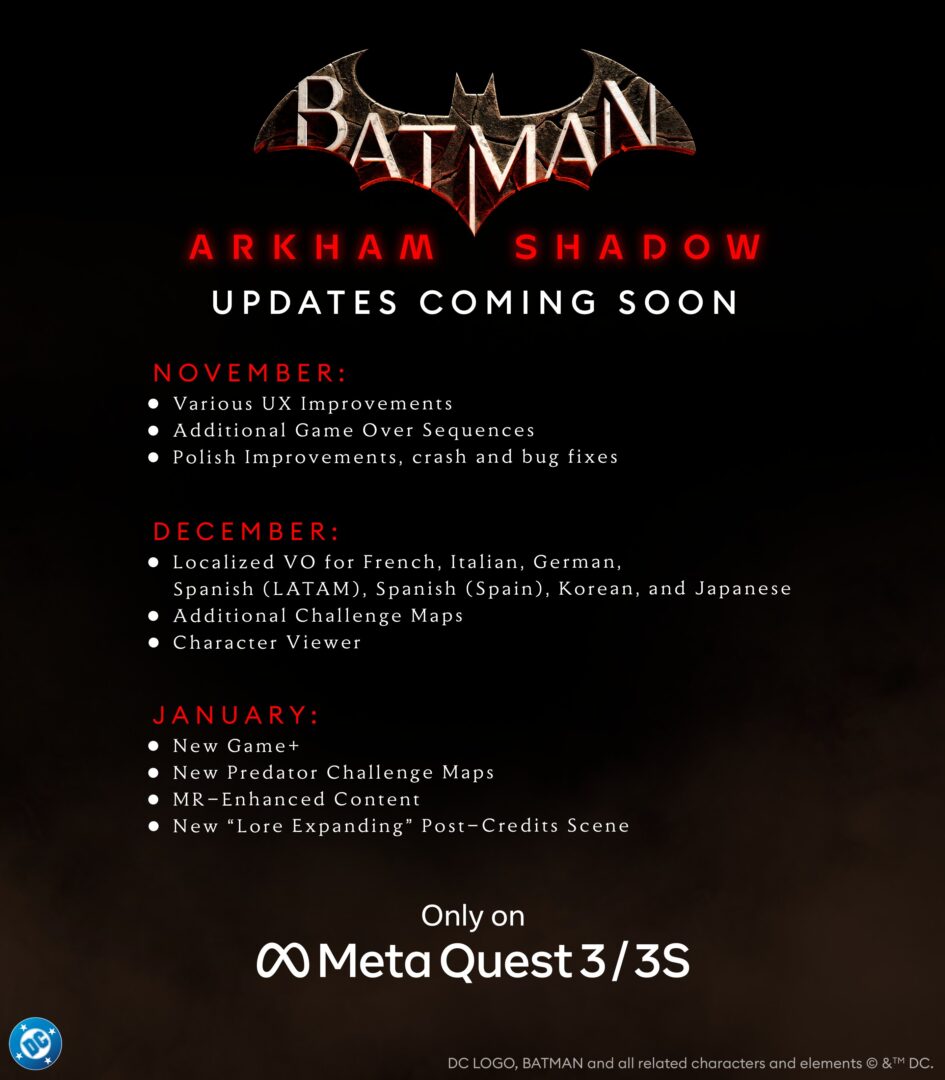 Wiemy już, kiedy należy się spodziewać nowej zawartości do Batman: Arkham Shadow. Nie zabraknie Nowej Gry+ oraz kolejnych map wyzwań.