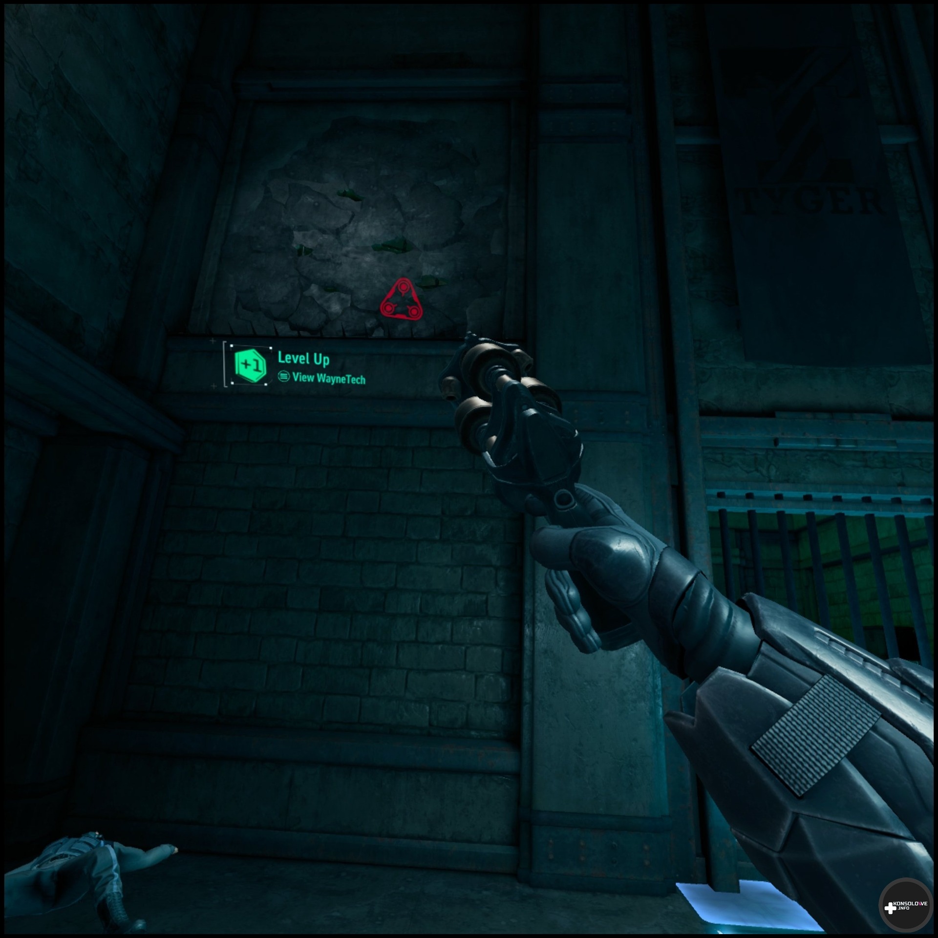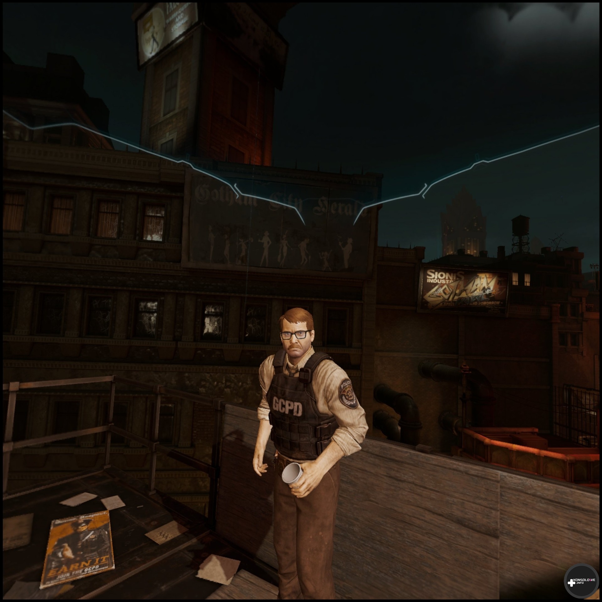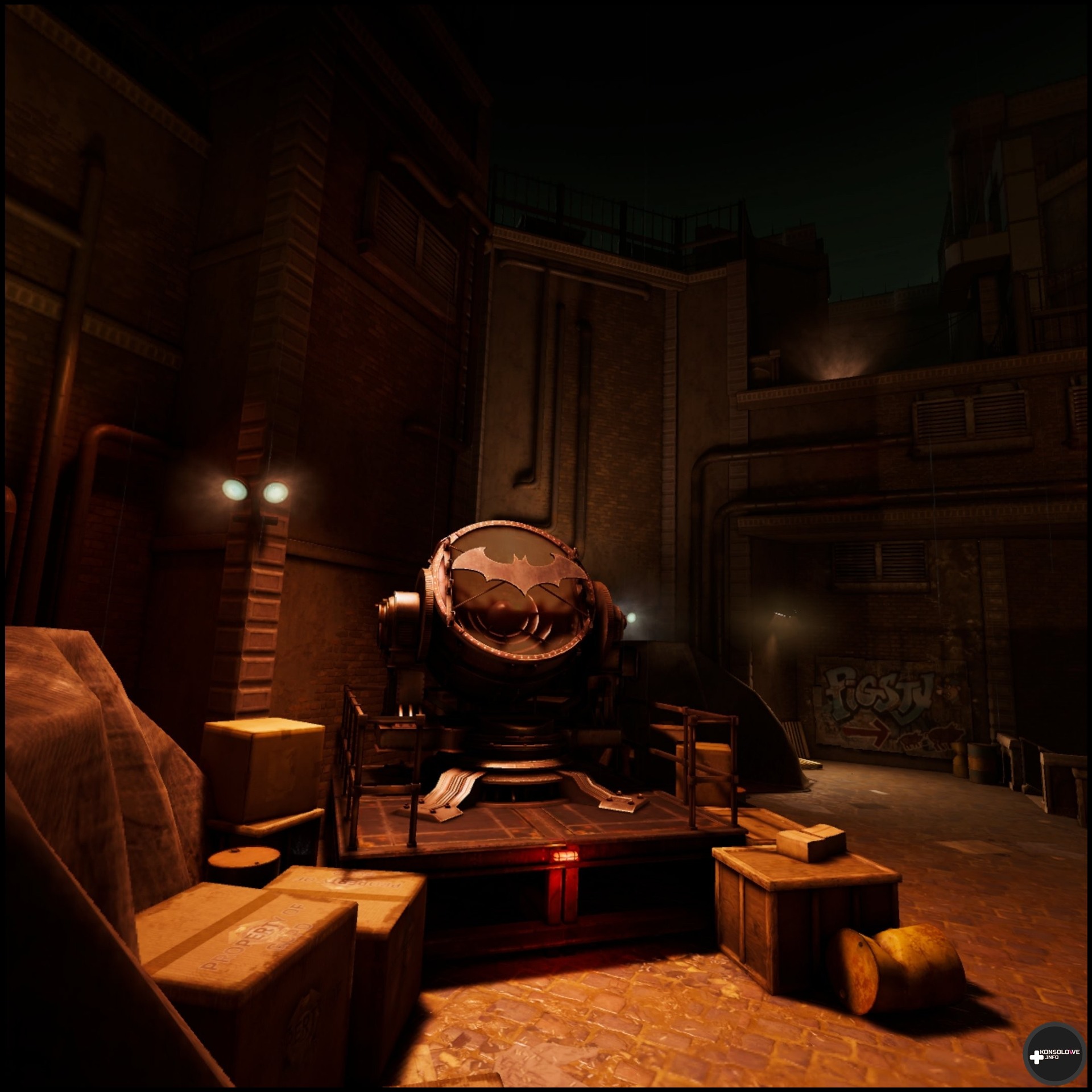 Batman to także noc, a więc nie waha się przekradać nad plecami niczego nieświadomych wrogów. Możemy na przykład rzucić batarangiem sonicznym, aby odwrócić uwagę przeciwnika. Gdy ten będzie się wybierał sprawdzić nowe miejsce, przemykamy tam po cichu, po gargulcach, by ostatecznie zawisnąć nad przeciwnikiem i pochwycić go, znokautować i powiesić pod żygaczem. W ten sposób zyskamy świetny sposób na ogłuszenie przechodzącego pod wisielcem wroga. Wystarczy celny rzut batarangiem (wyjmowanym z naszego symbolu na pancerzu)… Nie brakuje bynajmniej innych gadżetów – wysadzimy więc słabsze ściany za pomocą żelu wybuchowego.