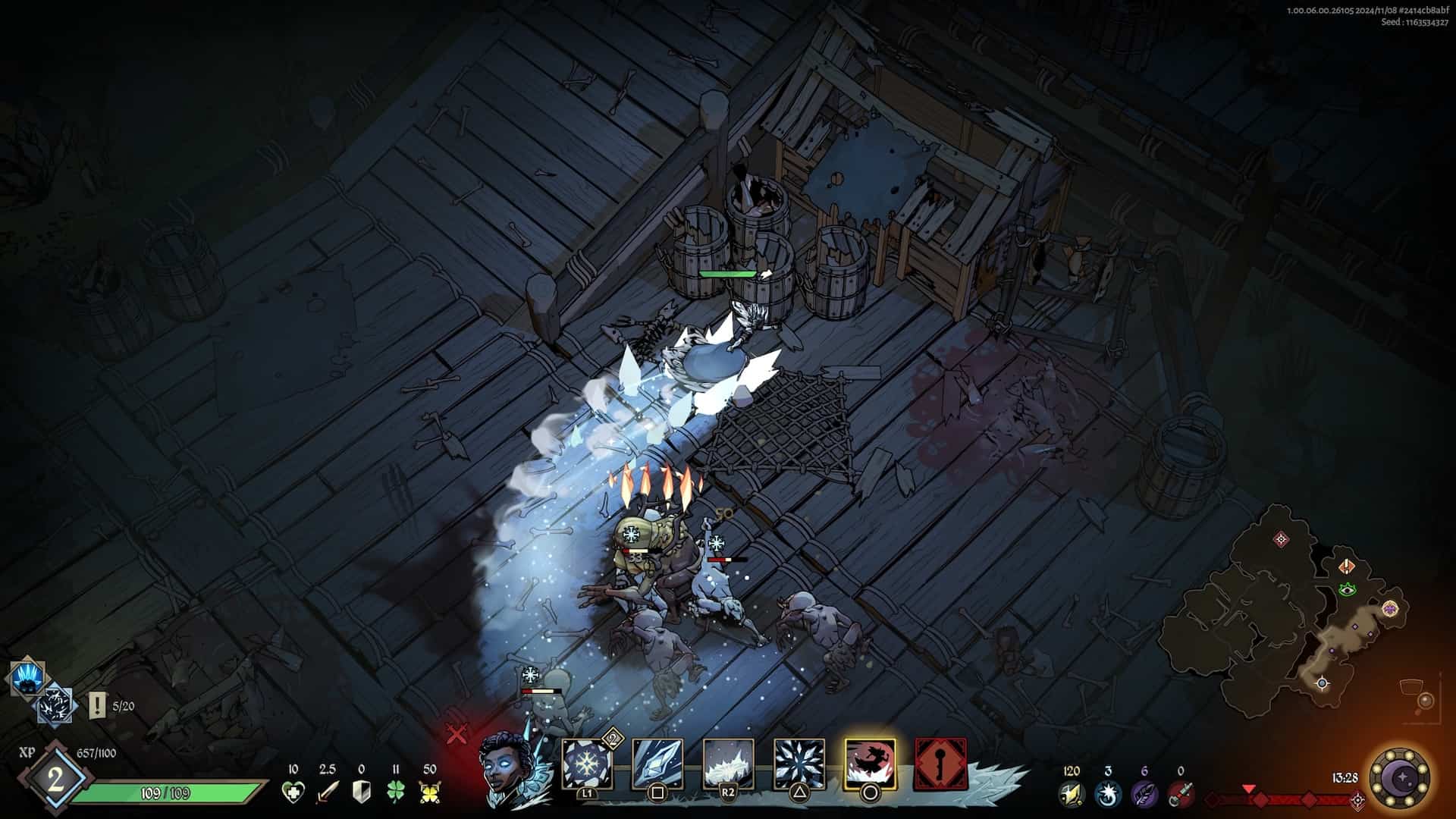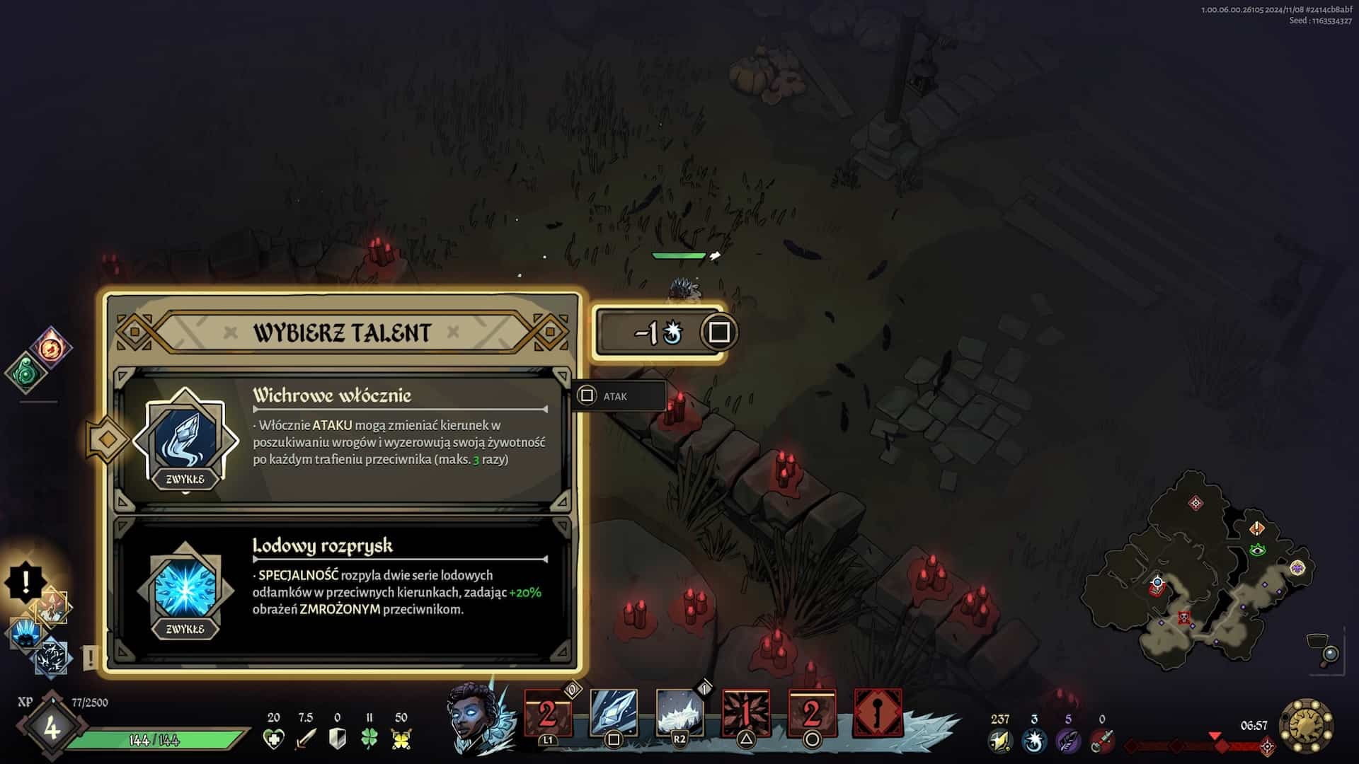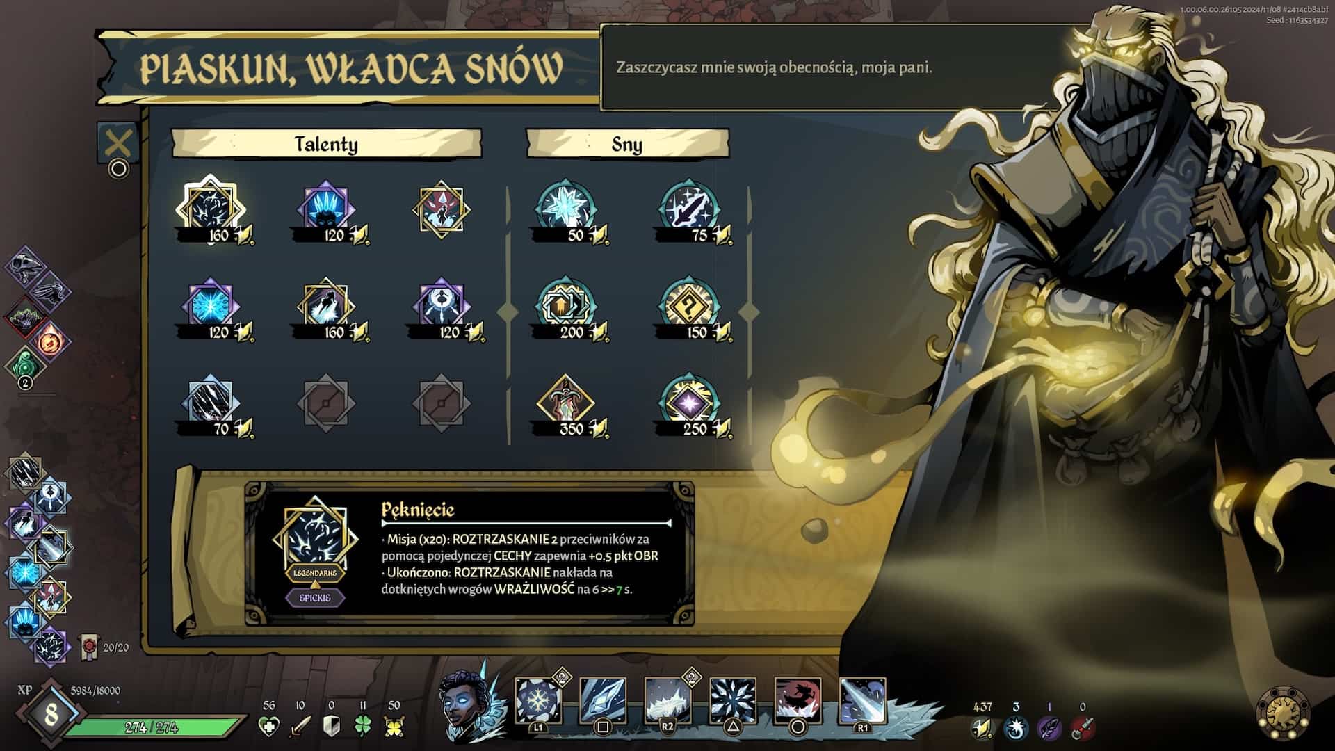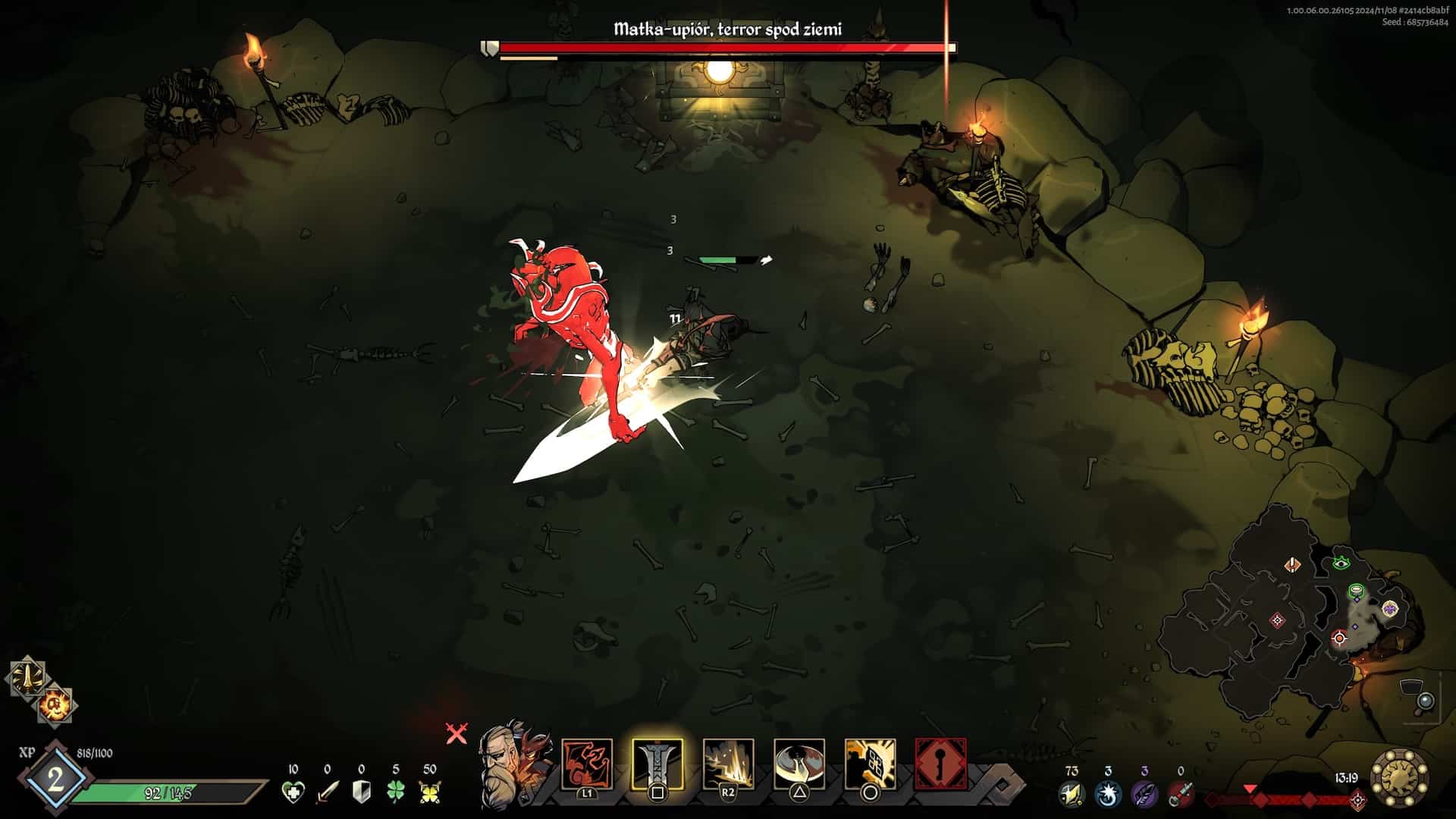 Zanim doszedłem do pełnego zrozumienia talentów mojej ulubionej postaci, musiałem jednak spędzić trochę czasu, nieporadnie i losowo wybierając kolejne ulepszenia, zupełnie nie pojmując ich działania. Tu tkwi jeden z największych mankamentów produkcji Passtech Games: wszechobecne skonfundowanie. Nie mam nic przeciwko grom, które nie odkrywają od razu wszystkich kart przed graczem. Ba, uwielbiam wręcz tytuły skupione na kultywowaniu mojej wiedzy i umiejętności, takie jak Outer Wilds czy Sifu. Trudno mi jednak zrozumieć decyzję o braku dostępu do naszego aktualnego zestawu umiejętności z poziomu rozgrywki. Możemy co prawda przejrzeć opisy w menu gry między kolejnymi podejściami, ale są one dosyć niezrozumiałe i wprowadzające w jeszcze większe zakłopotanie.