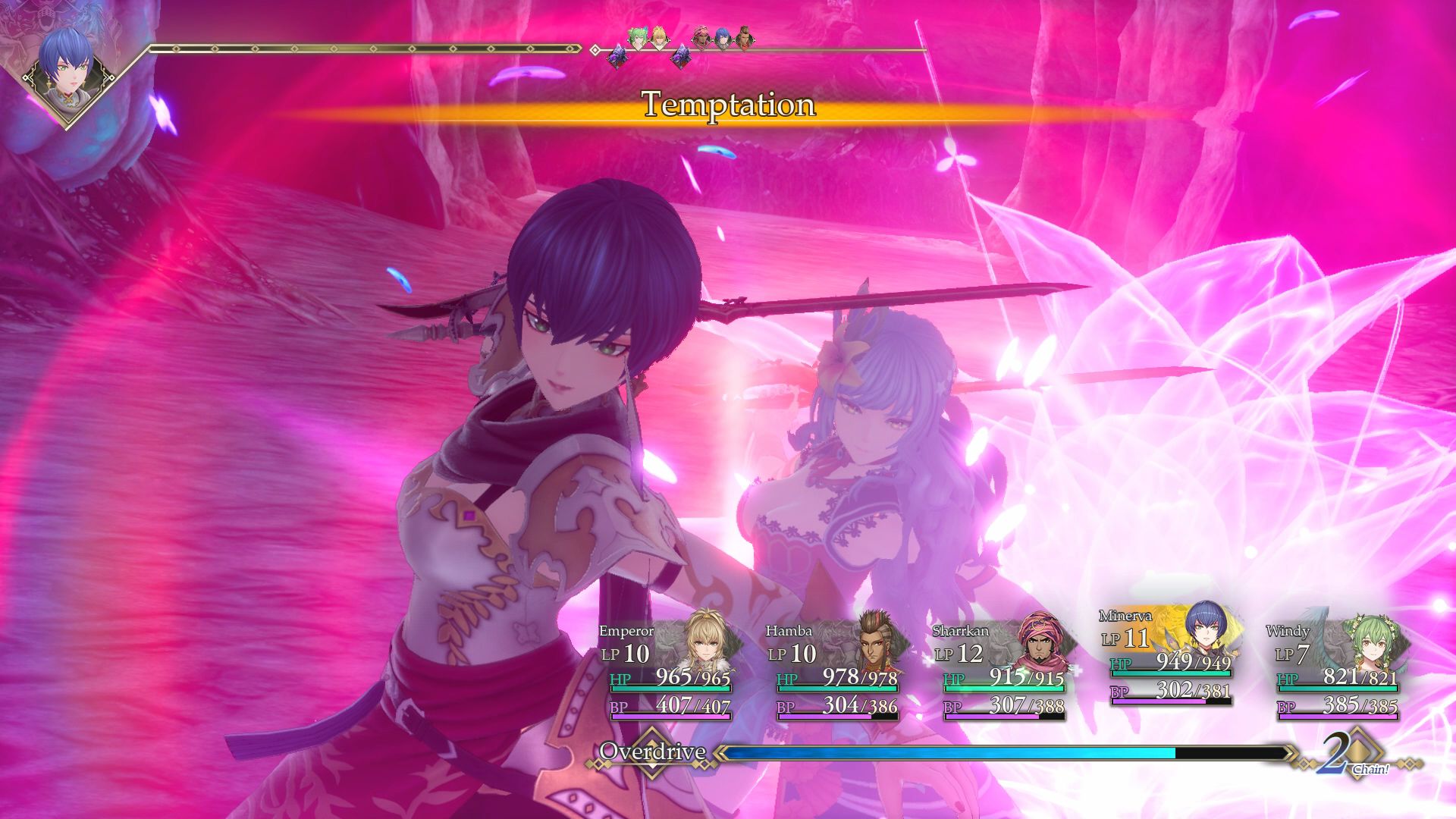 Walka w Romancing SaGa 2 opiera się na turach, a jej kluczowym elementem jest tak zwany system “Glimmer”. Umiejętności postaci są odkrywane w nieco losowy sposób podczas samych walk. Co z jednej strony jest ciekawym rozwiązaniem, ale może z czasem też irytować przy większej ilości bohaterów. Czy twoja postać nagle nauczy się parować cios w decydującym momencie? A może odkryje potężny atak w najbardziej potrzebnej chwili? Takie momenty wywołują niewątpliwie dreszczyk emocji. Jednak finalnie okazuje się, że są po prostu sposobem na przedłużenie rozgrywki poprzez rozgrywanie dziesiątek mało istotnych starć. Kolejnym ciekawym elementem walk jest możliwość aktywowania Zjednoczonego Ataku – potężnej zdolności drużynowej, która może przechylić szalę zwycięstwa na naszą stronę. Biorąc pod uwagę możliwość dobierania broni i wiele ciekawych klas postaci, pod względem batalistycznym jest co w tytule robić.