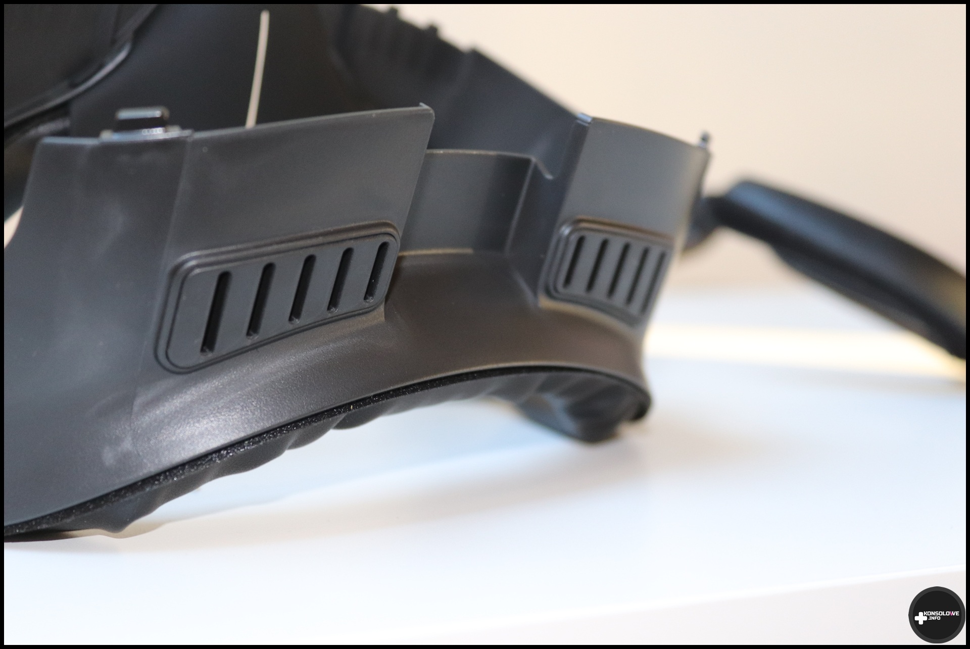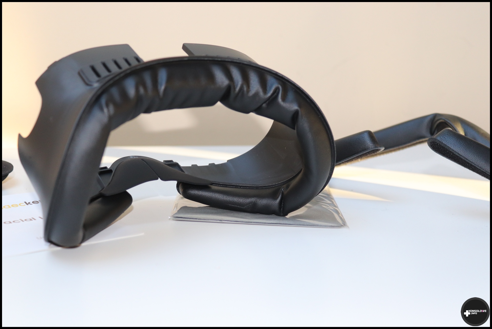 Podobnie zresztą jak bardzo dobra osłona na nos. Sprawia ona, że do gogli praktycznie nie dostaje się światło z otoczenia, a przez to zwiększa się nasza immersja. Na froncie interfejsu, w części dotykającej naszej twarzy, znajduje się pianka pamięciowa i przyznaję, że jest ona bardzo przyjemna. Interfejs pewnie siedzi w goglach i nie luzuje się nawet przy mocnych ruchach głową. Nie blokuje też miejsca na przewlekanie górnego paska od opasek. Korzystałem z tego interfejsu bez najmniejszego problemu zarówno z fabrycznej opaski, jak i z wariantu od AMVR oraz NordQuest VR. Doceniam również dodanie materiałowej osłonki na soczewki. Świetnie pasuje ona do interfejsu i nie wypada z niego – nawet kiedy specjalnie potrząsałem goglami do góry nogami, próbując pozbyć się w ten sposób osłony.