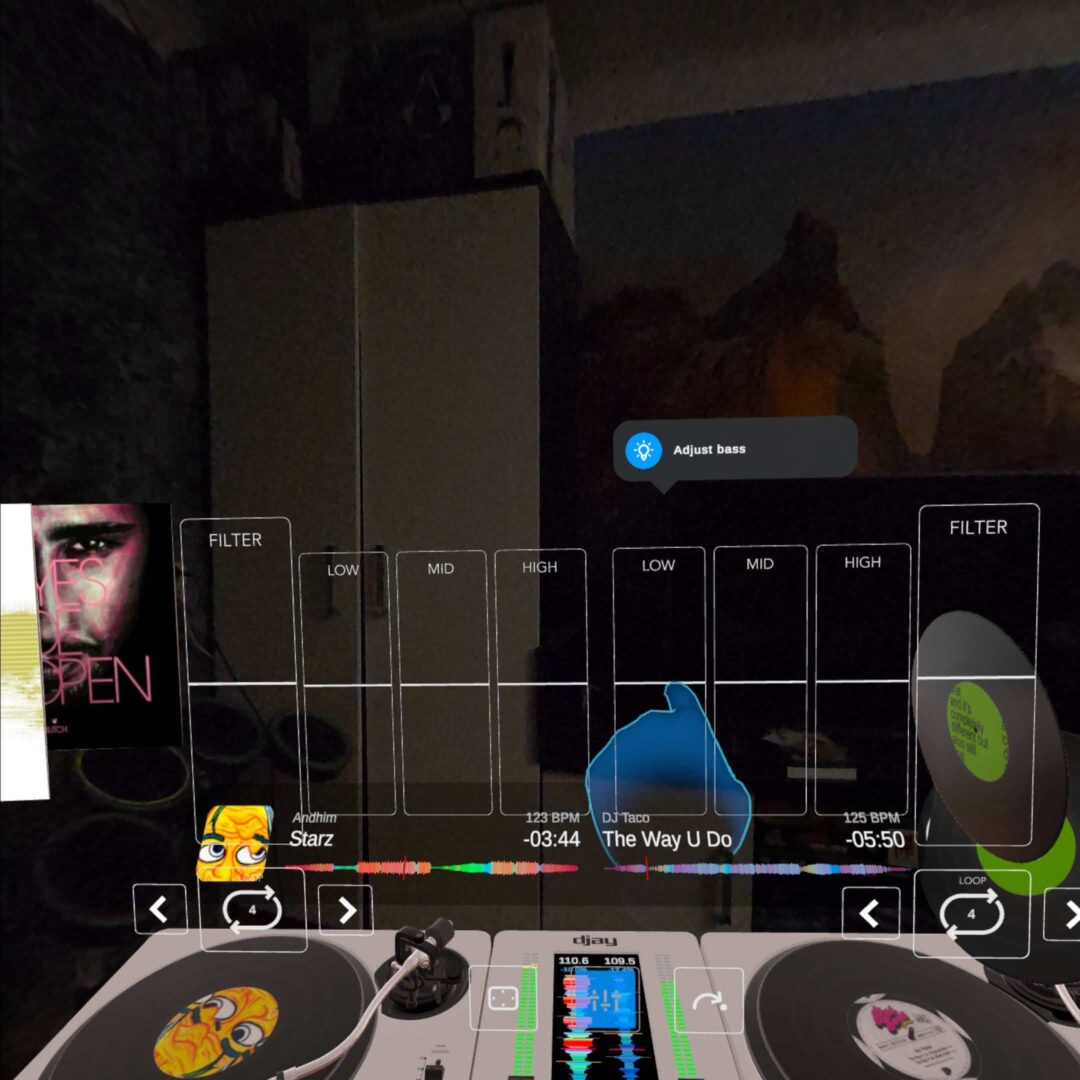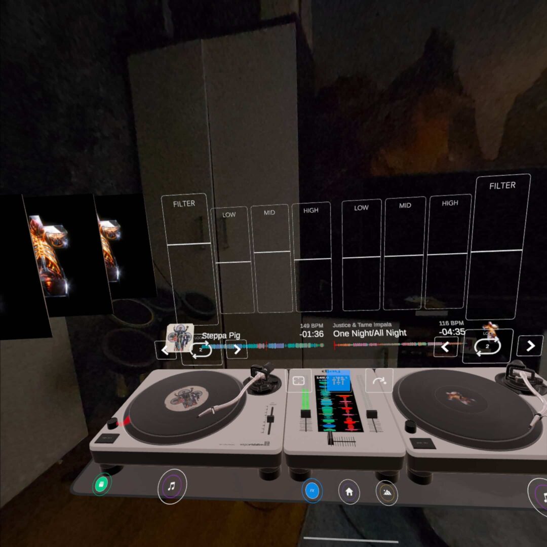 Z uwagi na przestrzenną naturę środowiska VR, rozwiązanie tego problemu samo ciśnie się na usta. Wystarczyłoby po prostu dać użytkownikowi funkcję rozlokowania różnych paneli wokół siebie, by doświadczenie stało się nie tylko bardziej intuicyjne, ale też niemożliwe do imitacji dla tradycyjnych form programów na płaskich ekranach. Bardzo liczę na to, by Algoriddim z czasem dodał te oraz inne funkcje do swojej aplikacji. Brakuje jej bowiem naprawdę sporo: nie ma choćby dzielenia utworów na stemy, które jest obecne w wersji na inne platformy. Przydałaby się też możliwość korzystania z sampli, żeby urozmaicić grane miksy.