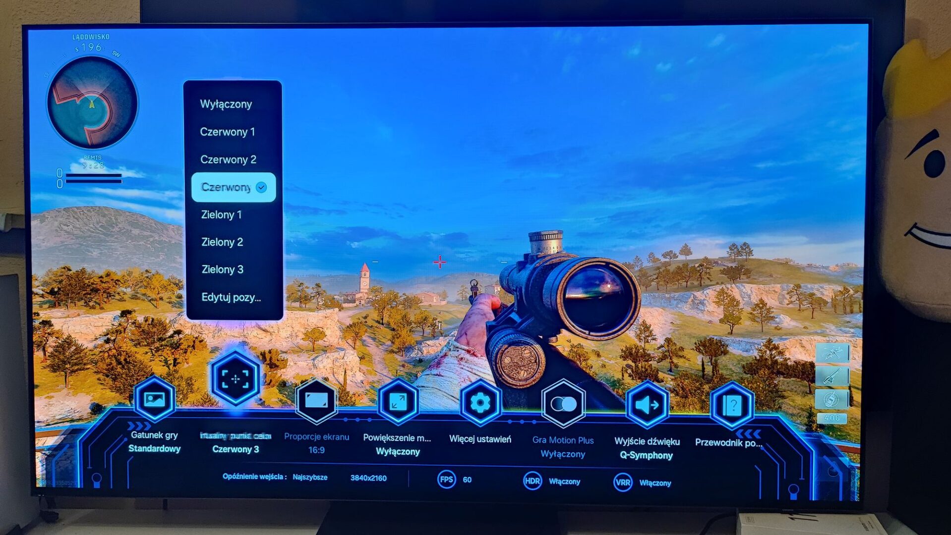 Ostatnią grą, w którą dane mi było zagrać przed zwróceniem sprzętu było Call of Duty: Black Ops 6. Opisywany telewizor ma bardzo niski input lag, a do tego umożliwia granie w 120 klatkach na sekundę, więc jest kapitalnym wyborem do rozgrywki wieloosobowej. W Black Ops 6 świetnie przydaje się wirtualny celownik, zarówno w kampanii, trybie Zombie, jak i oczywiście multiplayerze. Normalny celownik jest słabo czytelny, a do tego rozciąga się, gdy zaczynamy biec. Z wirtualnym celownikiem bez wątpienia zdobędziecie większą przewagę na wirtualnym polu bitwy. Jest zawsze dobrze widoczny, możemy wybrać mu kolor oraz kształt, który najbardziej nam odpowiada.