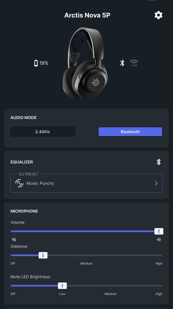Wspomniane dwa tryby łączności to bardzo miła niespodzianka, dzięki której Arctis Nova 5P to słuchawki nie tylko gamingowe. Jeśli potrzebujemy niskiego opóźnienia i niezawodnego połączenia, warto wybrać tryb 2.4GHz poprzez wspomniany adapter. Przez cały okres testowania nie napotkałem żadnych zakłóceń w tej opcji łączności. Drugą możliwością jest połączenie słuchawek przez Bluetooth, co czyni je dobrym sprzętem nie tylko do grania, ale też codziennego użytku. Arctis Nova 5P obsługują nawet czuwanie Bluetooth, dzięki czemu dzwoniący telefon odbierzemy jednym kliknięciem przycisku, nawet jeśli korzystamy z połączenia adapterem.