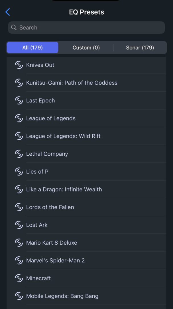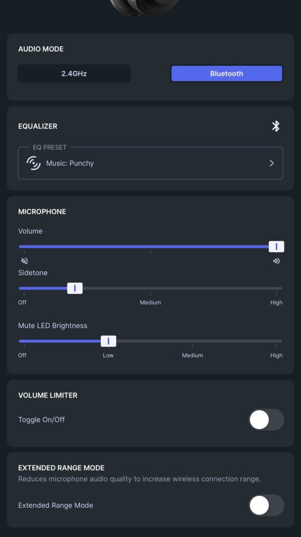 Warto też wspomnieć o aplikacji mobilnej SteelSeries Arctis, która pozwala na dostosowanie wielu kluczowych właściwości słuchawek. Możemy w niej zmienić głośność odsłuchu, jasność diody wskazującej poziom naładowania baterii, a nawet włączyć tryb rozszerzonego zasięgu działania kosztem jakości mikrofonu. Znajdziemy tu również equalizer wyposażony w ponad 170 ustawień dedykowanych konkretnym grom, gatunkom oraz muzyce. Warto spędzić tu trochę czasu, by dostosować słuchawki pod siebie — w domyślnym trybie Flat nie brzmią one zachwycająco.