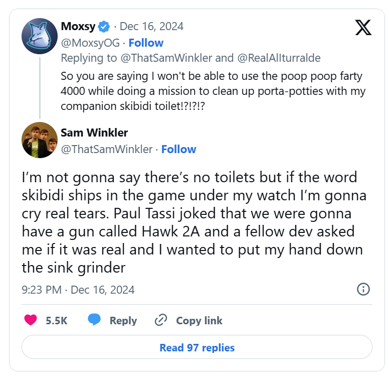 Mamy też dobre wiadomości dla tych, których humory gry ciut gorszył. Sam Winkler odpowiedzialny za narrację w grze zapewnił nas, że zobaczymy tam nawiązań do popularnych memów jak „skibidi toilet” czy „Hawk Tuah”. I całe szczęście! Trochę sprośnych żartów na pewno zobaczymy, ale nie powinno być aż tak źle, by było nam wstyd to czytać.