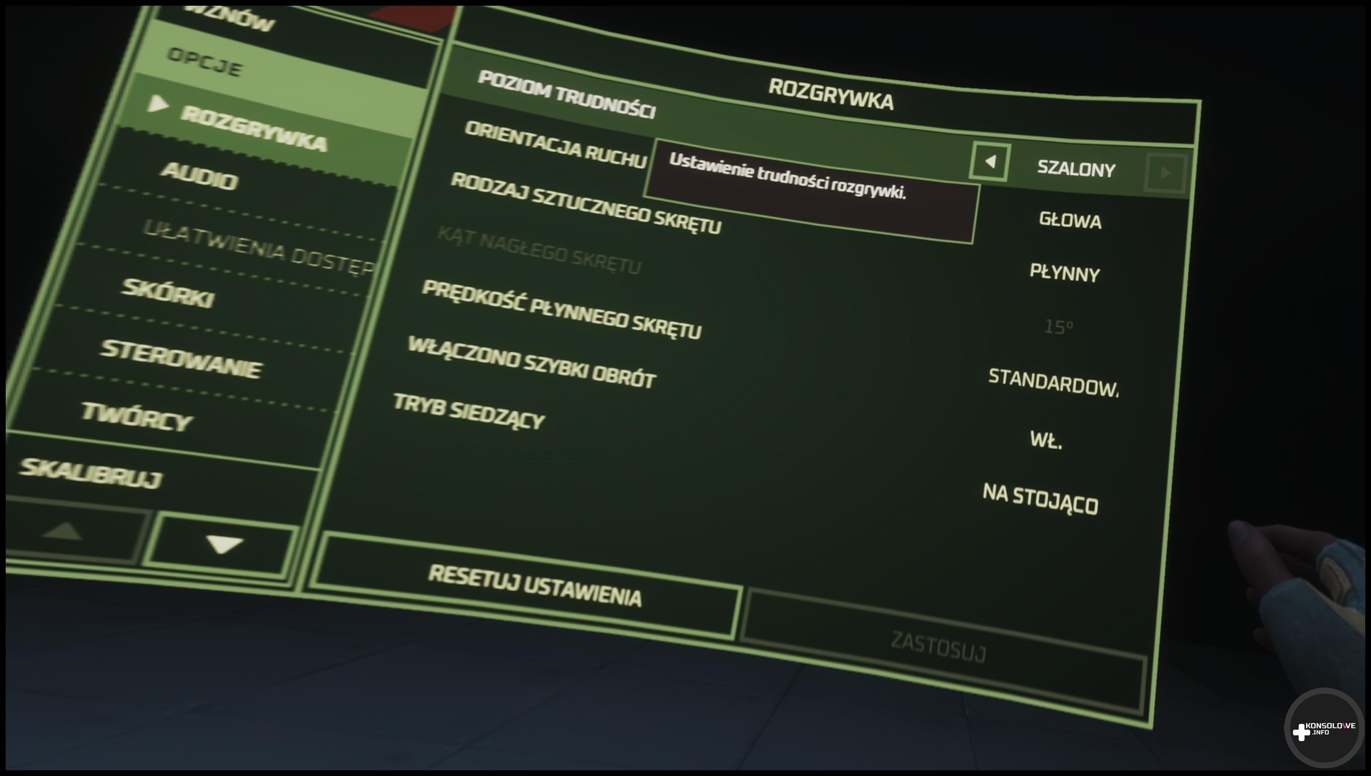 Mało tego – można wybrać nawet obrotowy lub stacjonarny fotel w układzie siedzącym. Ja oczywiście – jeśli nie grałem stojąc – stawiałem na stacjonarny fotel. Jednak kabel gogli PS VR2 nie zachęcał mnie do wyboru wariantu obrotowego. Nie zdziwiłbym się natomiast gdyby to rozwiązanie sprawdziło się w przypadku wersji gry na Meta Quest 3 (planowanej na przyszły rok). Wróćmy teraz jednak do ustawień komfortu na PS VR2.