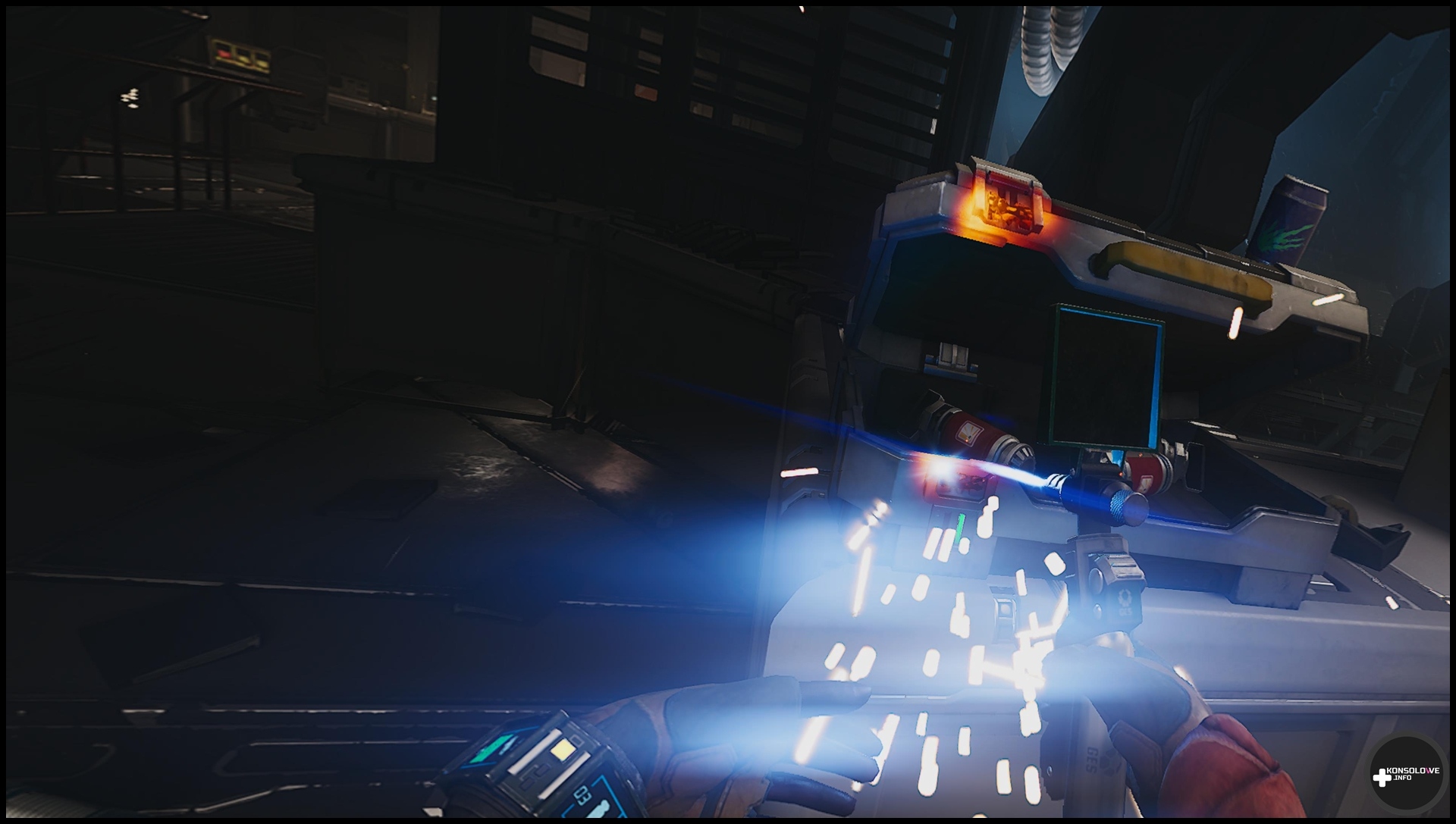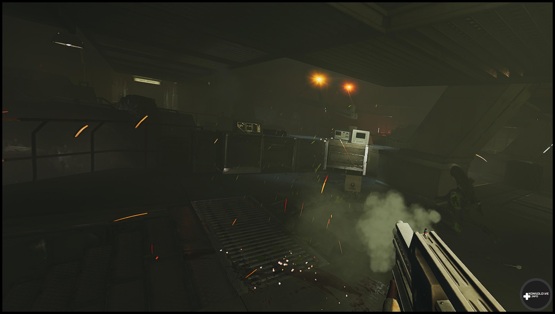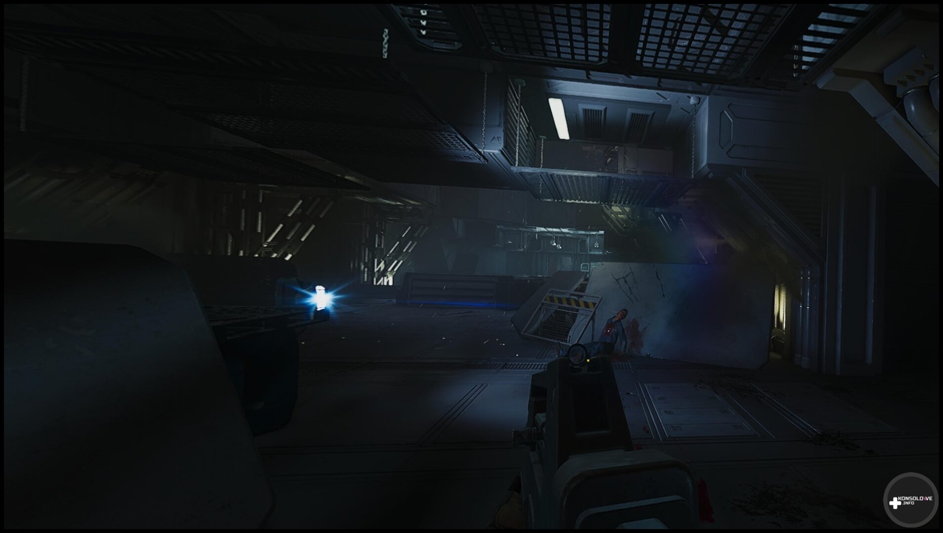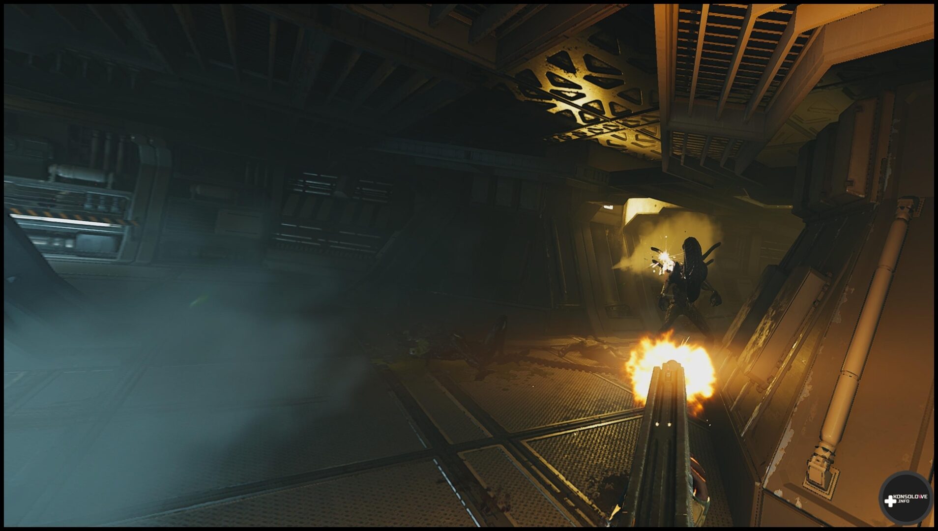 Często będziemy przemierzać korytarze oraz szyby wentylacyjne – choć bynajmniej nie doradzam przyzwyczajać się do nich. Jak z pewnością wiedzą fani filmowej serii, to właśnie szyby stanowią ulubione miejsca stacjonowania ksenomorfów. Nierzadko będziemy też musieli przepiąć kable, by otworzyć sobie przejście. Wiąże się to z dość prostą minigierką, która nie frustruje, ale wprowadza pewne urozmaicenie do rozgrywki. Nie mogę również nie wspomnieć o zapisywaniu rozgrywki w specjalnych kryjówkach, co odbywa się po włożeniu tabletu do odpowiedniego gniazda. Warto tam też przeszukiwać szafki – możemy w nich znaleźć stymulanty lecznicze, czy zapas amunicji. Oczywiście jak często byśmy nie sprawdzali odczytów na wykrywaczu ruchu i nasłuchiwali, w końcu natkniemy się na ksenomorfy. W starciu z nimi bynajmniej nie jesteśmy bezbronni. Możemy korzystać z karabinu pulsacyjnego, strzelby oraz rewolweru, a nawet granatów (o ile znajdziemy je w świecie gry).
