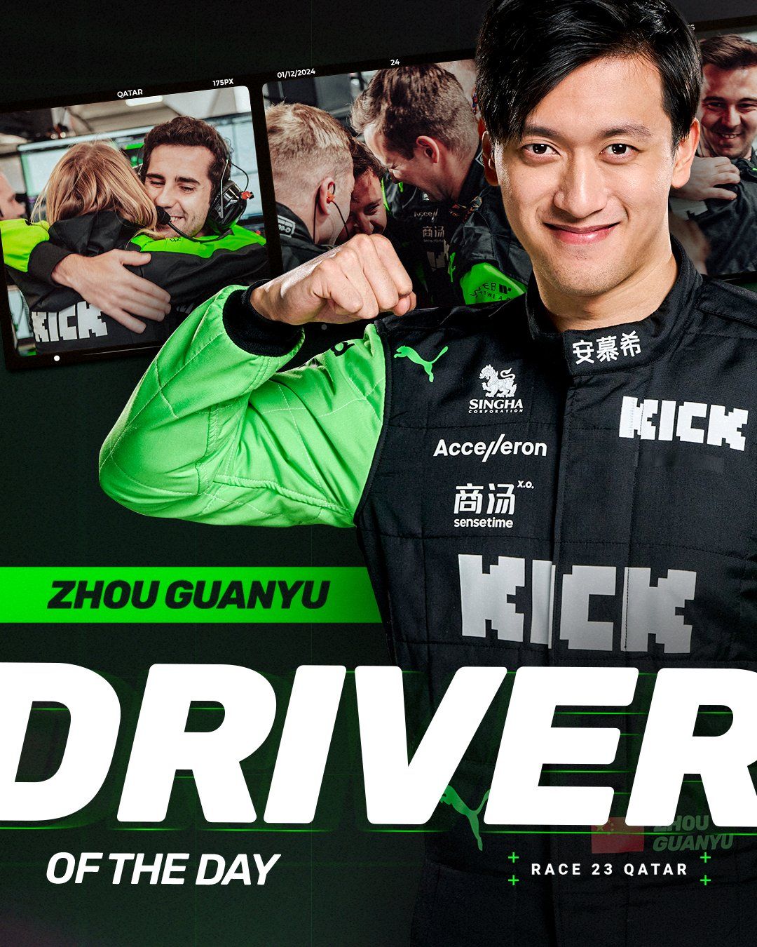Nie ulega wątpliwości, że KICK Sauber F1 Team to czerwona latarnia Formuły 1. Szwajcarski zespół wyścigowy, którego założycielem jest Peter Sauber, do minionego weekendu nie zdobył jeszcze punktu. Fiński kierowca Valtteri Bottas oraz Chińczyk Zhou mieli zerowy stan zarówno w klasyfikacji kierowców, jak i konstruktorów. Jednak los w końcu uśmiechnął się do nich w trakcie przedostatniego w tym sezonie Grand Prix, które miało miejsce w Katarze. Zhou Guanyu dojechał na ósmej pozycji, zdobywając cztery punkty. Niewiele zabrakło, aby jego zespołowy kolega również zdobył punkt, niestety Bottas dojechał na 11 miejscu. Zhou w Katarze nie tylko zdobył swoje pierwsze punkty, ale również został wybrany przez fanów najlepszy kierowcą wyścigu.