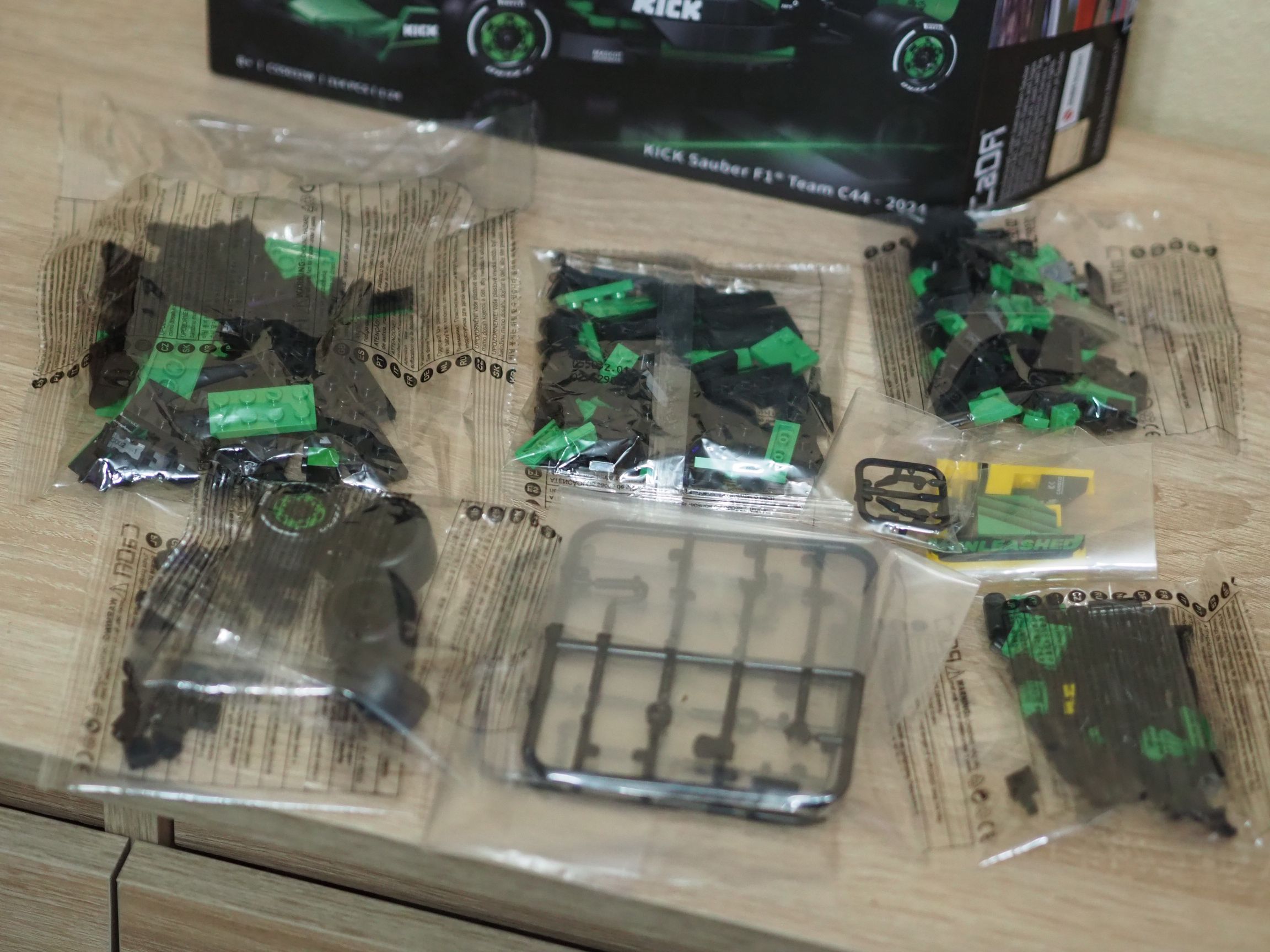 To bez wątpienia historyczne wydarzenie zmotywowało mnie do otwarcia zestawu klocków KICK Sauber F1 Team C44, który otrzymałem jakiś czas temu od firmy CaDA. Jeżeli regularnie śledzicie nasz portal, to z pewnością rzuciły wam się w oczy moje recenzje dużych, licencjonowanych zestawów chińskiego producenta. Warto przeczytać choćby o fantastycznej Mazdzie RX-7 C61502W z filmu Szybcy i wściekli. Przygotowałem również recenzję dużego zestawu Alfa Romeo Formuła 1 Team Orlen, którym jeździł między innymi Robert Kubica, jako kierowca testowy. Model ten składał się aż z 1868 elementów.