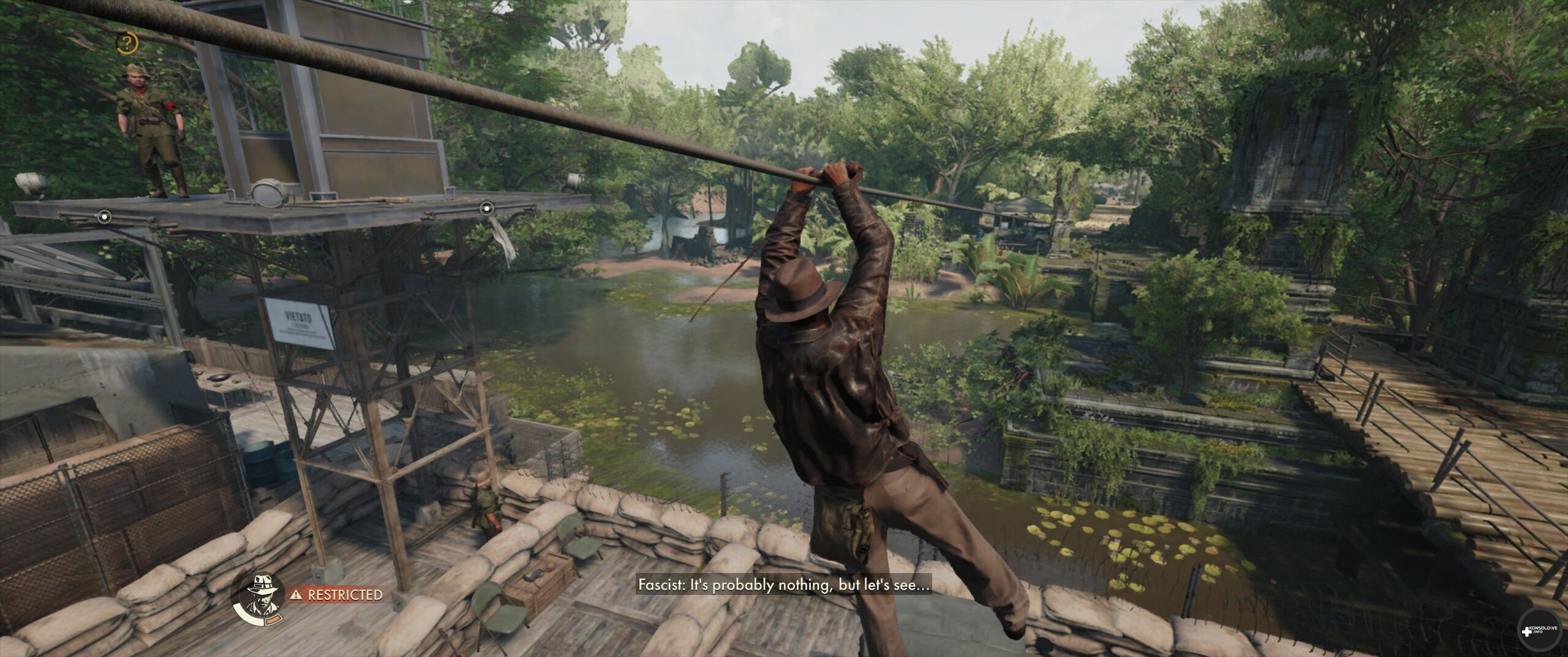 Indiana Jones i Wielki Krąg to na dobrą sprawę pierwszoosobowa skradanka – coś a la Dishonored, czy Deus Ex: Bunt Ludzkości. Obszary, które będziemy odwiedzać wręcz zachęcają do cichego pokonywania trudności. Wprawne oko nierzadko zauważy alternatywne drogi do celu, pozwalające nam uniknąć wzroku przeciwników (i zwierząt). Często główne wejście jest zamknięte, a do jego otwarcia niezbędny będzie odpowiedni klucz. Sprawia to, że aż chce się zaglądać w każdy kąt. Zwłaszcza, że można się natknąć na opcjonalne zadania, o czym dowiecie się więcej z następnej części recenzji. Pisząc natomiast o rozgrywce, nie mogę nie wspomnieć o zmaganiu się z wrogami. Podstawowym sposobem na zmierzenie się z przeciwnikiem powinno być odwrócenie jego uwagi.
