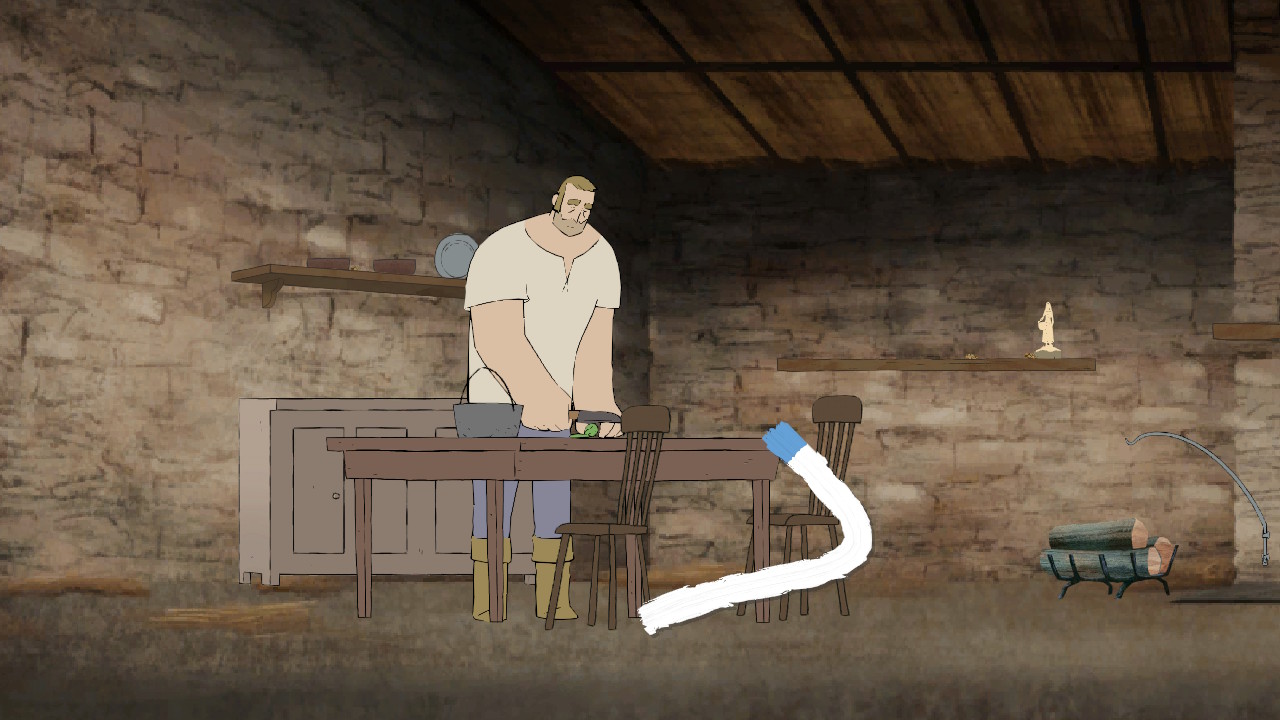 Jak wyżej wspomniałam, Pine jest nietypową grą, również w kontekście rozgrywki. Nasze działania w świecie gry polegają przede wszystkim na pomocy w wykonywaniu codziennych obowiązków przez drwala. Sterowanie nie wymaga od nas niczego skomplikowanego – cięcie drewna ograniczenia się do naciśnięcia jednego przycisku lub poruszenia gałką w danym kierunku. Tego typu czynności robimy bardzo często, w zasadzie każdy dzień mężczyzny sprowadza się do tego samego: podlania grządek, ścinania drewna czy przygotowania obiadu. Brzmi to wszystko nudno i… w zasadzie takie jest. Protagonista jest osobą pogrążoną w głębokim smutku, każdy jego dzień wygląda tak samo beznamiętnie. Twórcy w ten sposób spróbowali wzbudzić podobne emocje w odbiorcach, co z pewnością nie zachęci każdego. Jest to ciekawy zabieg, chociaż sprawia, że gra wówczas staje się pozbawiona elementu rozrywkowego. Co prawda, mamy tutaj kilka bardziej angażujących przerywników, np. w postaci muzycznej zagadki lub puzzli, jednak większa część gry opiera się na powtarzalności.