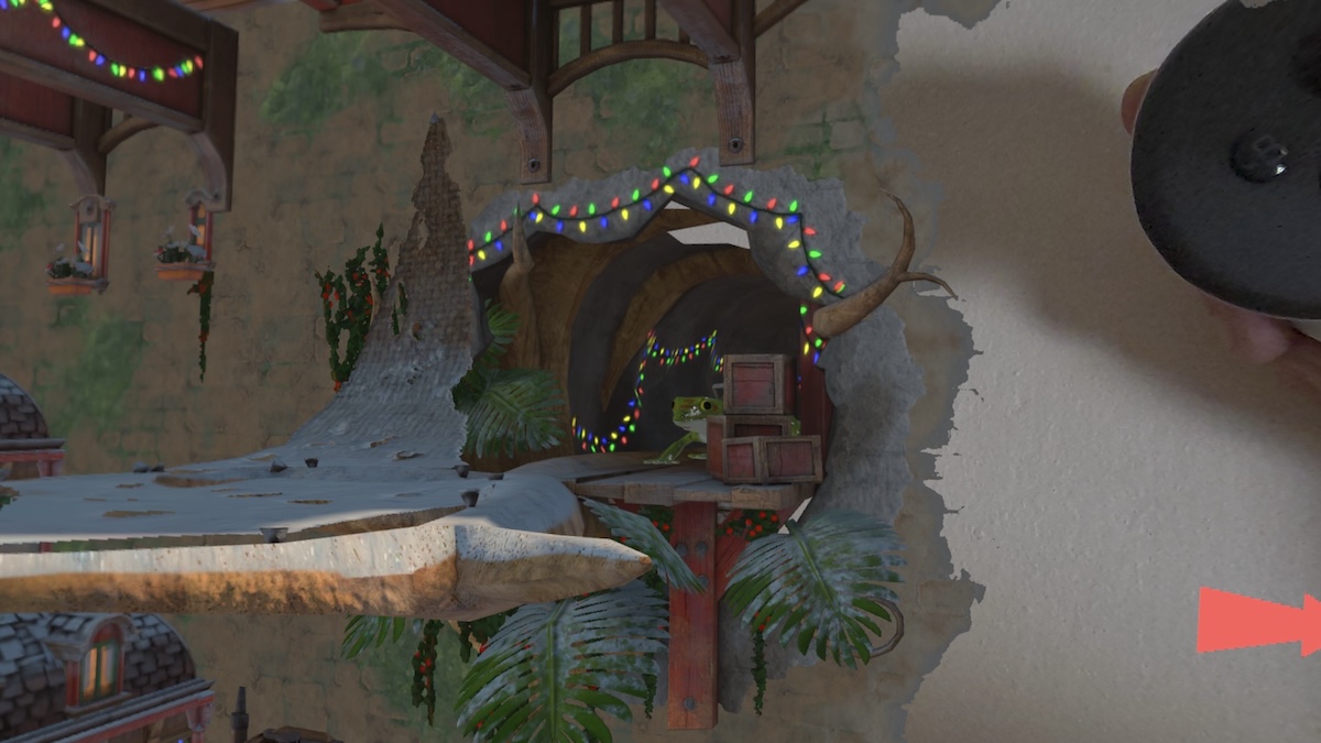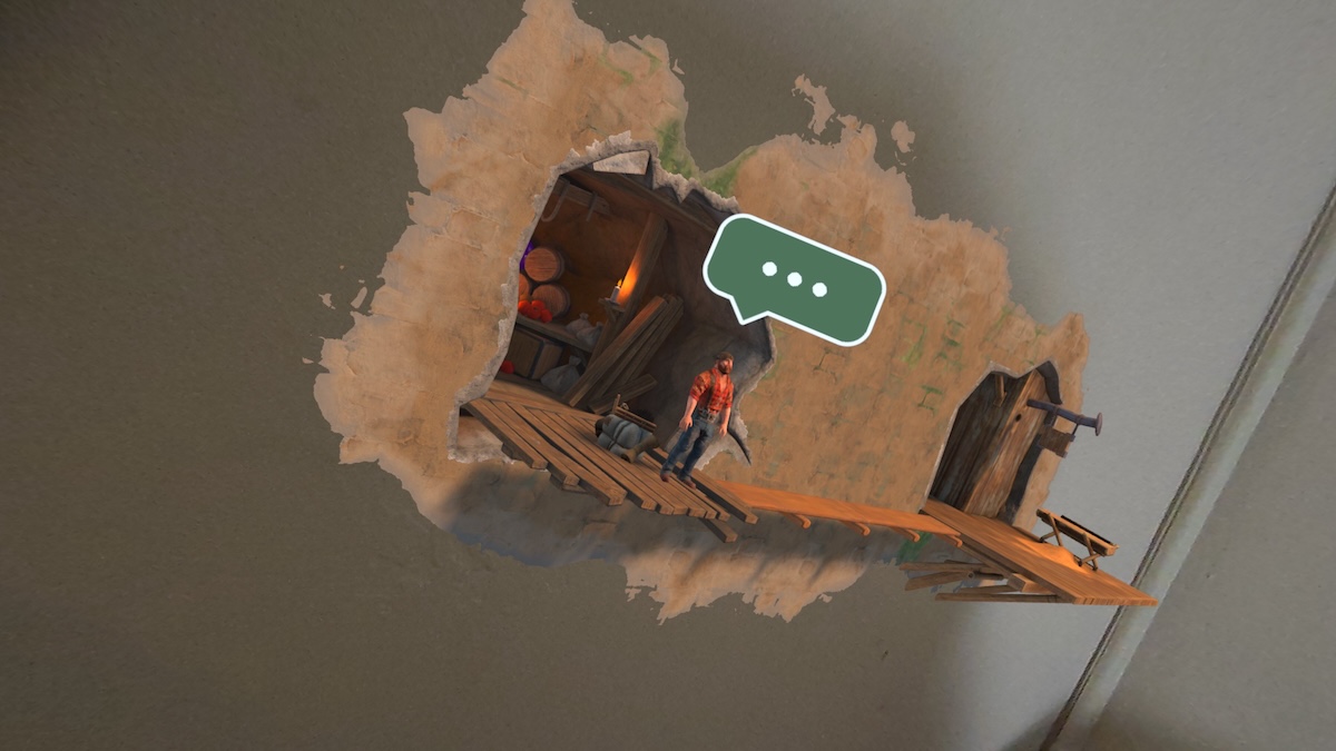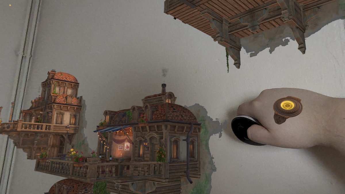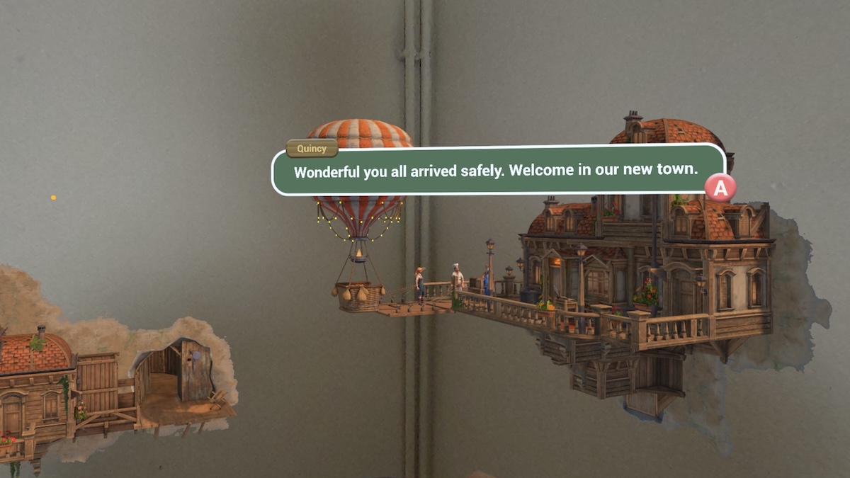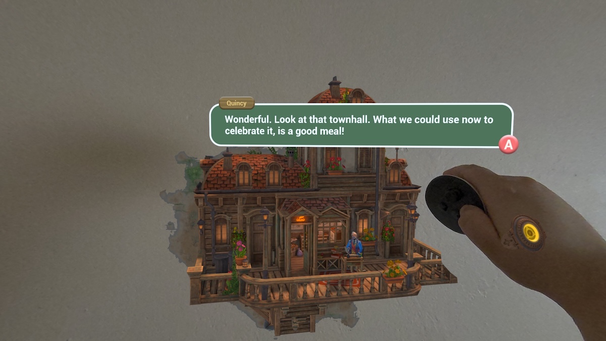 Gra wykorzystuje możliwości Meta Quest 3, oferując płynne sterowanie zarówno za pomocą kontrolerów, jak i śledzenia dłoni. Zdarzało się, że instrukcje w interfejsie nie były do końca jasne, ale nie utknąłem nigdzie na dłużej. Warto wspomnieć Wall Town Wonders to nie gra kompletnie stacjonarna. W zależności od wielkości naszej przestrzeni może się zdarzyć, że mieszkańcy miasteczka będą wymagali od nas przemieszczenia na drugi koniec pokoju. Przy minigrze z kierowaniem samolotu na lotnisko miałem też mały problem z odpowiednim ustawieniem pilota do lądowania. Gra jako punkt docelowy wybrała miejsce zaraz przy ścianie, przez co niechlubnie kilka razy zdarzyło mi się rozbić pilota. Na szczęście porażka nie ma tu konsekwencji i dostajemy nieskończoność szans na spróbowanie ponownie.