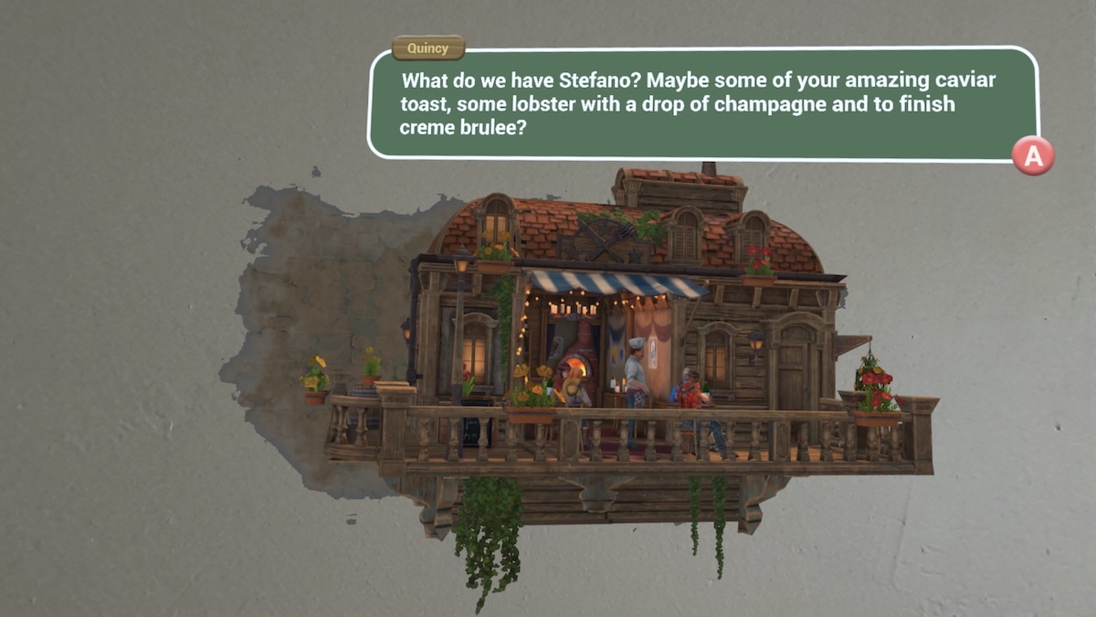 Mojemu pierwszemu spojrzeniu na budyneczki tycich osadników towarzyszył niemały zachwyt. Gra zachwyciła mnie niezwykle szczegółową grafiką i ekspresywnymi animacjami, które sprawiają, że miniaturowe miasteczko tętni życiem. Efektowne wizualizacje budynków i postaci w połączeniu z realistycznymi cieniami w otoczeniu tworzą naprawdę immersyjne doświadczenie. Chyba najbardziej zaimponowało mi, gdy zbliżyłem twarz do restauracji, w której mogłem dostrzec każdy najmniejszy detal wystroju. Dźwięk w grze jest subtelny, ale efektywnie buduje atmosferę spokojnego, żywego miasteczka.
