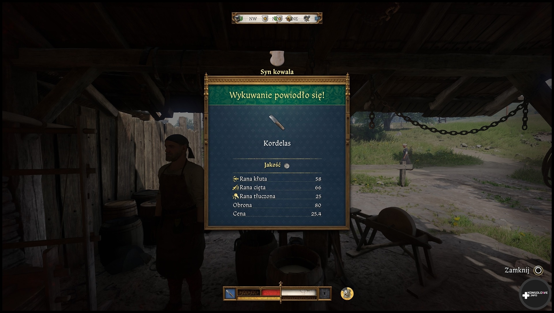 Kowalstwo nie jest jedyną sztuką, którą warto opanować. Nie należy też lekceważyć walki. Henryk jest w stanie korzystać zarówno z broni do walki wręcz, jak i oręża dystansowego. Mamy więc łuki, kusze, czy broń palną. Naturalne kusza jest zdecydowanie łatwiejsza w obsłudze niż łuk, ale odznacza się też inną wagą oraz dłuższym czasem potrzebnym na przeładowanie. Nawet jeśli zamierzacie specjalizować się w atakach dystansowych, to nie należy moim zdaniem lekceważyć krótkiej broni i osłony. Miecz wymaga co prawda wprawy (co jest jedną z wielu zalet, jakie póki co zauważyłem), ale w połączeniu z dobrą tarczą jest w stanie zadecydować o czyimś być lub nie być.