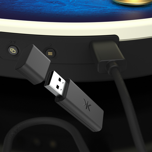 CRKD Gibson Les Paul działa zarówno przewodowo, jak i bezprzewodowo, korzystając z częstotliwości 2,4 GHz. Bezprzewodowa łączność odbywa się na dwa sposoby – z wykorzystaniem dongla USB lub przez Bluetooth, co zapewnia wysoką kompatybilność z wieloma rodzajami sprzętu. W opakowaniu z kontrolerem znajdziemy oczywiście samą gitarę, ale też wspomniany dongle, wymienialną baterię do ładowania, 2,5-metrowy kabel USB oraz pasek na ramię. Warto zaznaczyć, iż kabel posiada blokadę, dzięki której nie powinniśmy obawiać się rozłączenia kontrolera podczas intensywnego grania. Ponadto kontroler posiada składający się z ośmiu przycisków Navigation Hub jak żywo przypominający przełącznik z prawdziwej gitary elektrycznej. Na jego środku umieszczono lewą gałkę analogową, natomiast drugi przełącznik służy jako prawa gałka analogowa. Nie brakuje też whammy bara – zarówno on, jak i oba analogi obsługują efekt Halla. Nie brakuje też w pełni funkcjonalnego krzyżaka, przełącznika platformy i pokrętła trybu. Ma to ułatwić zmienianie układów sterowania, gier czy nawet poziomów trudności.