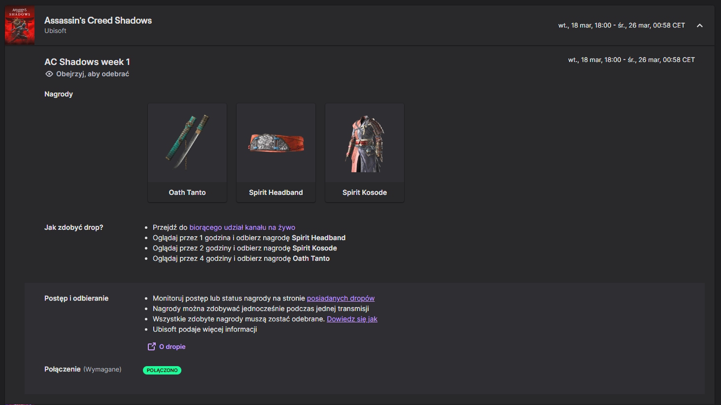 Assassin’s Creed Shadows wydaje się być dość popularną grą (nawet pomimo pewnych kontrowersji). Dodatkowo Ubisoft umożliwia odbieranie nagród na Twitchu.