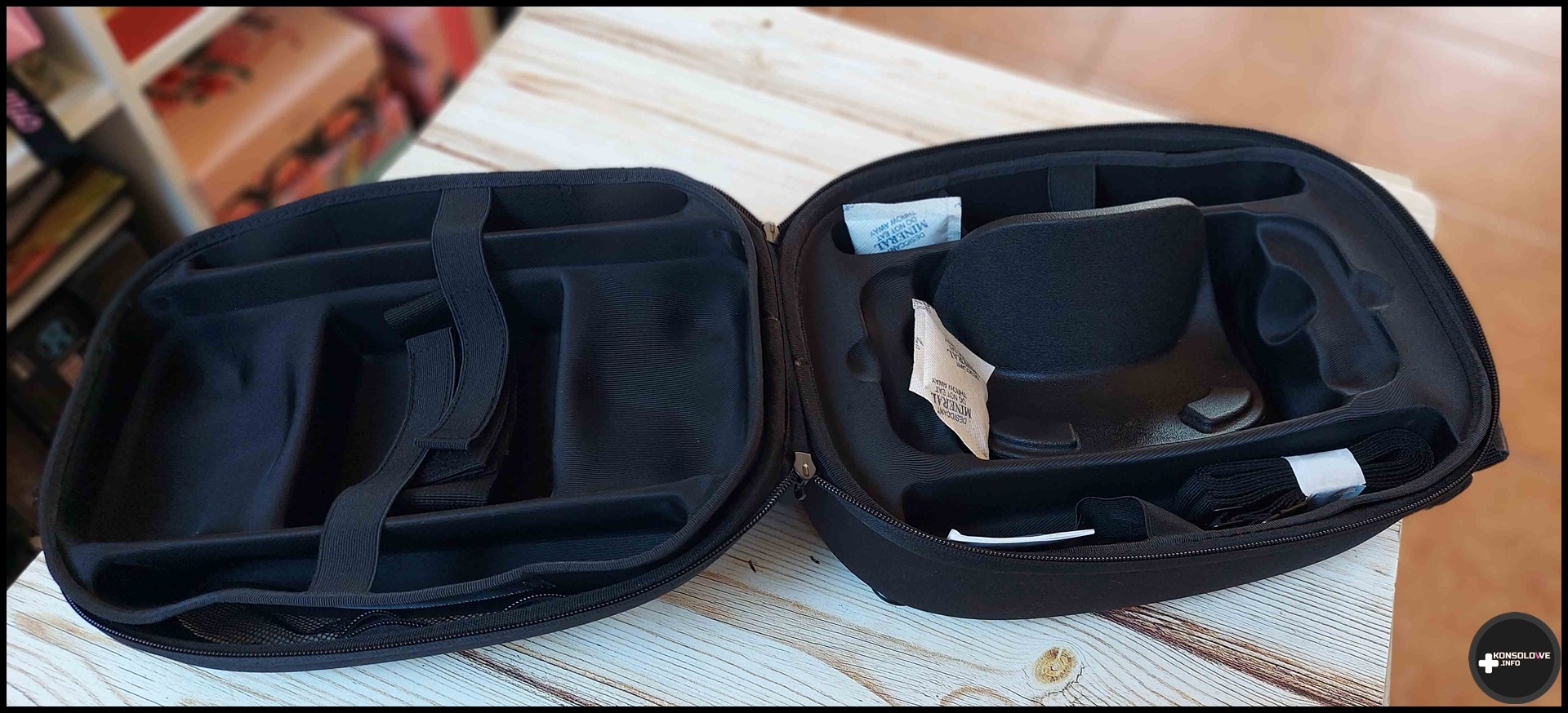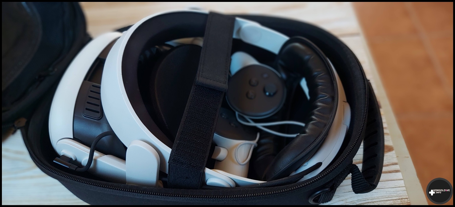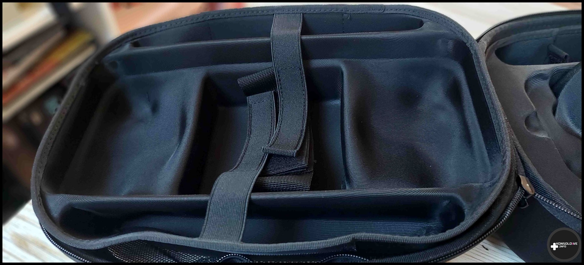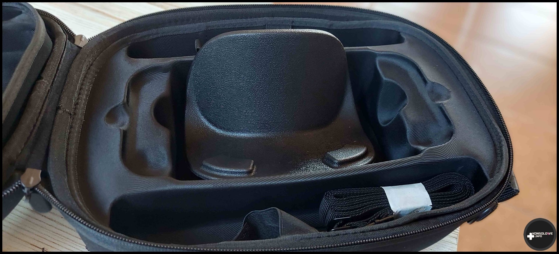 Co istotne, JSAUX w komplecie z plecakiem dostarcza szereg wkładek, dzięki którym możemy niejako wymodelować wnętrze pod kątem konkretnego sprzętu. I tak na przykład zmieścimy bez najmniejszego problemu Nintendo Switch OLED wraz z zasilaczem oraz stacją dokującą. Możemy zamiast tego zdecydować się również na gogle PlayStation VR2 lub Meta Quest 3. W przypadku Meta Quest 3 bez najmniejszego problemu dołączyłem też kontrolery. Natomiast w przypadku PS VR2 zmieszczenie Sense’ów do plecaka było dość karkołomnym zadaniem.