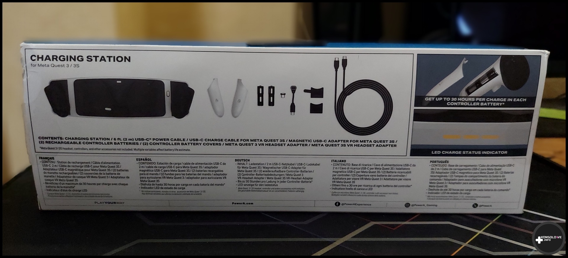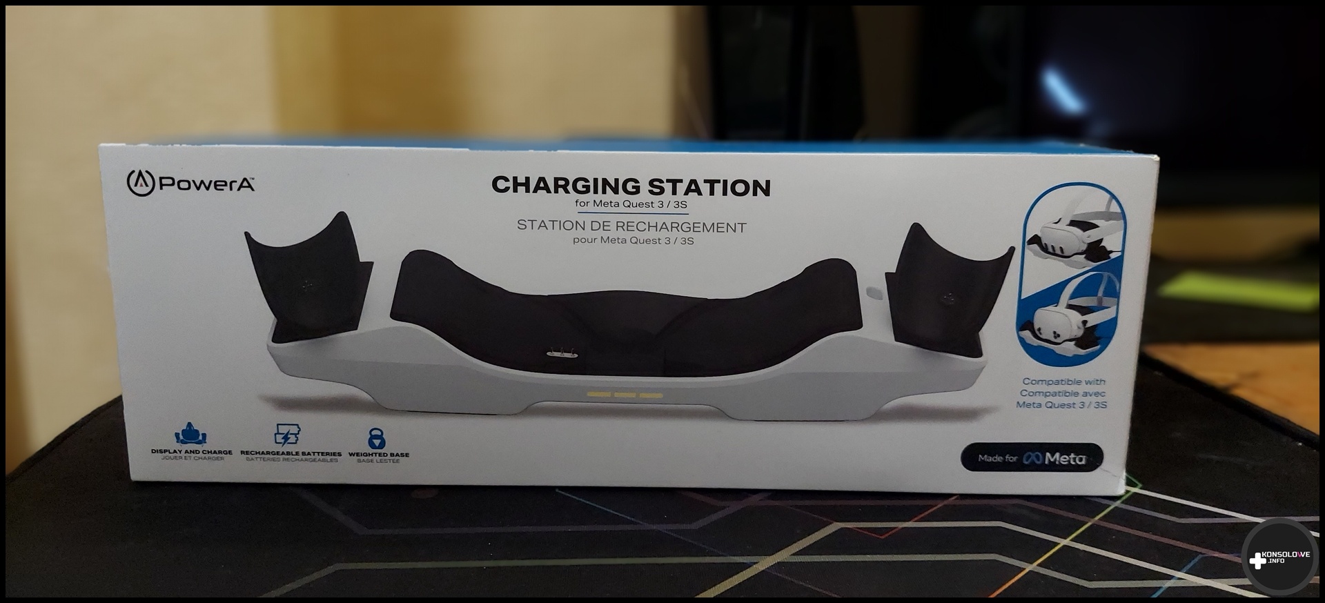 Jak z pewnością wie każdy posiadacz gogli Meta Quest 3, jedną z ich najważniejszych zalet jest bezprzewodowość. Nie ukrywam, że jest to w moim przekonaniu cecha, która często stawia ten sprzęt wyżej w moim rankingu niż gogle PlayStation VR2. Naturalnie bezprzewodowość wiąże się też z koniecznością ładowania urządzenia. Dotyczy to zarówno gogli, jak i kontrolerów Touch+. Miałem już okazję sprawdzania stacji ładowania od firmy Maecker. Nie była ona bynajmniej idealna, toteż z ogromnym zainteresowaniem sięgnąłem po propozycję od PowerA. Czy moim zdaniem powinna się ona znaleźć w pokoju fana wirtualnej rzeczywistości? Przekonajmy się; najpierw zajrzyjmy do opakowania.