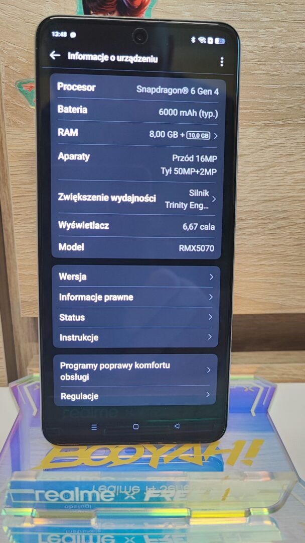 Sercem urządzenia jest nowoczesny i wydajny procesor Qualcomm Snapdragon 6 Gen 4 wspierany przez 12 GB pamięci RAM. realme 14 5G, to pierwszy na świecie smartfon wyposażony w ten procesor. Osiąga on imponujący wynik ponad 750 000 punktów w benchmarku AnTuTu, co czyni go przodującym urządzeniem w swojej kategorii. Na pokładzie znajdziemy również 256 GB pamięci wbudowanej, którą przeznaczymy nie tylko na gry, ale i nagrania rozgrywki czy zrzuty ekranu.