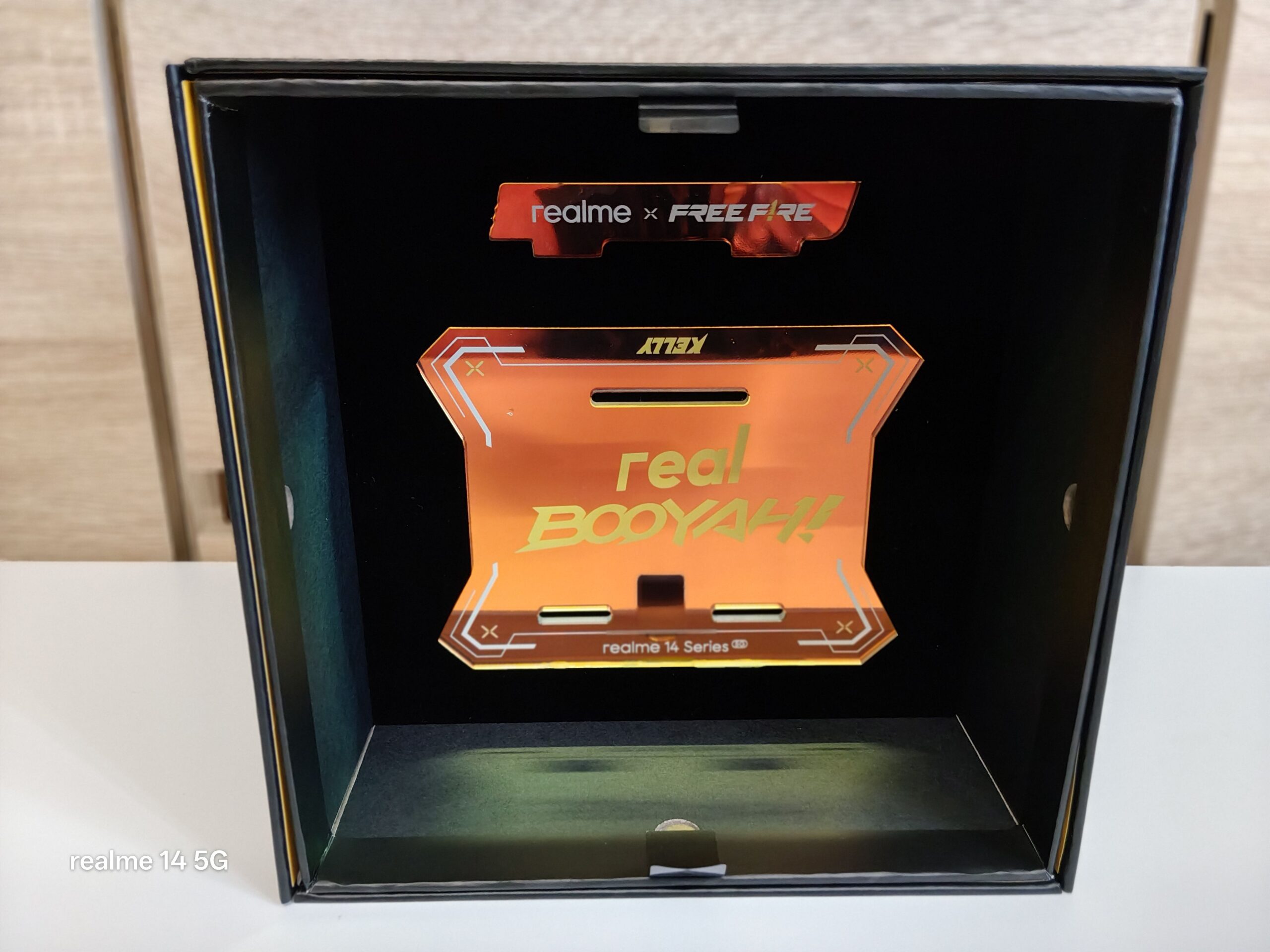 Decydując się na realme 14 5G X Free Fire Edition w zestawie otrzymacie dwa opakowania. Jedno mniejsze ze smartfonem oraz drugie, znacznie większe zawierające gadżety z gry Free Fire oraz dodatkowe akcesoria do smartfona. Zacznijmy oczywiście od samego telefonu.