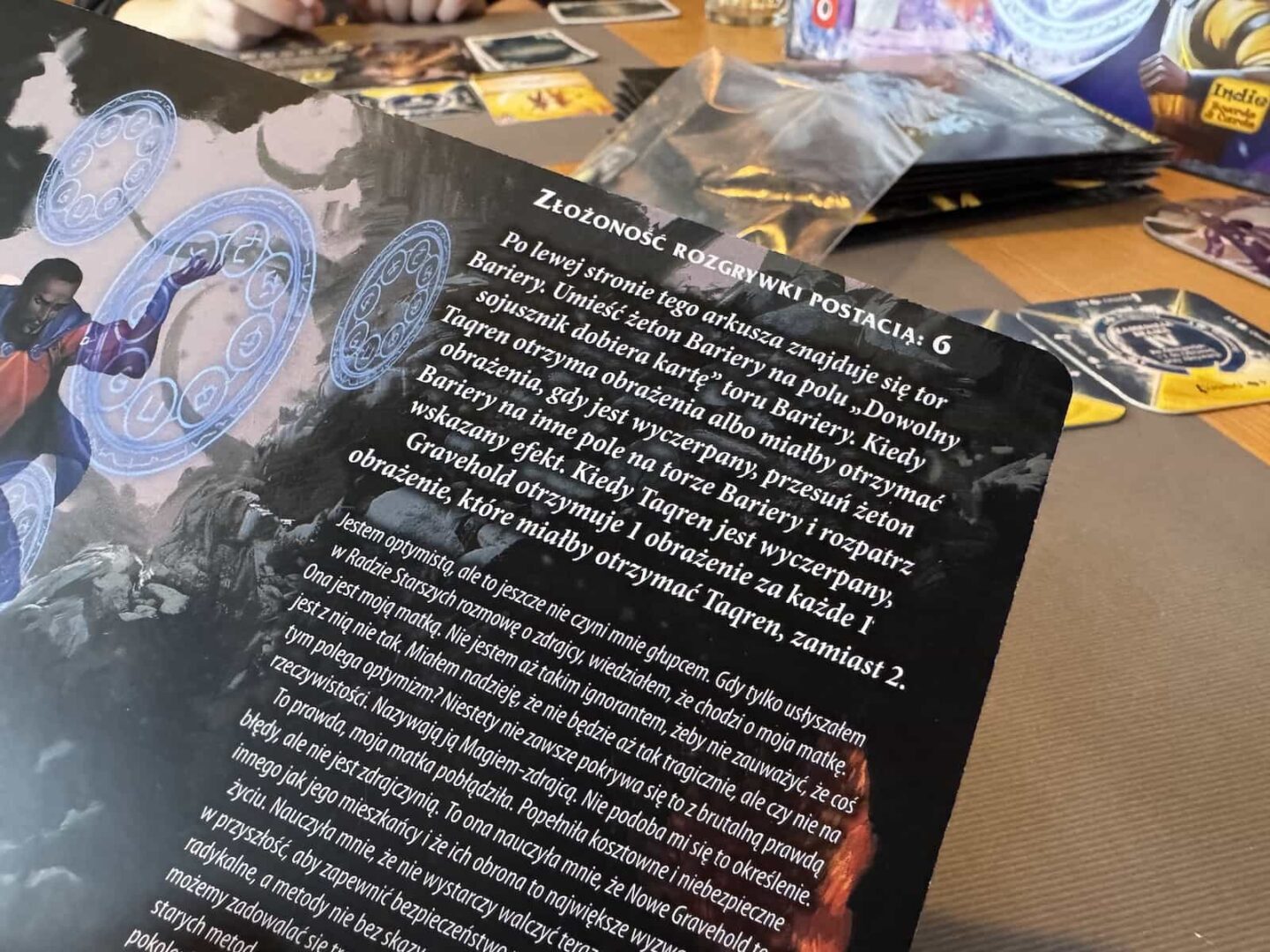 Najtrudniejszym starciem okazała się bowiem właśnie instrukcja. W duchu poprzednich publikacji Portal Games, zasady gry opisane są tu bardzo nieczytelnie. Twórcy operują zbyt niejasnymi sformułowaniami, przez co na przestrzeni (bardzo) długich zdań szybko gubimy podmiot i nagle okazuje się, że nie wiemy, o czym tak naprawdę czytamy. Niektóre zdolności bohaterów nie są tu opisane wcale, więc skończyło się na własnym dopowiadaniu i ustalaniu zasad.