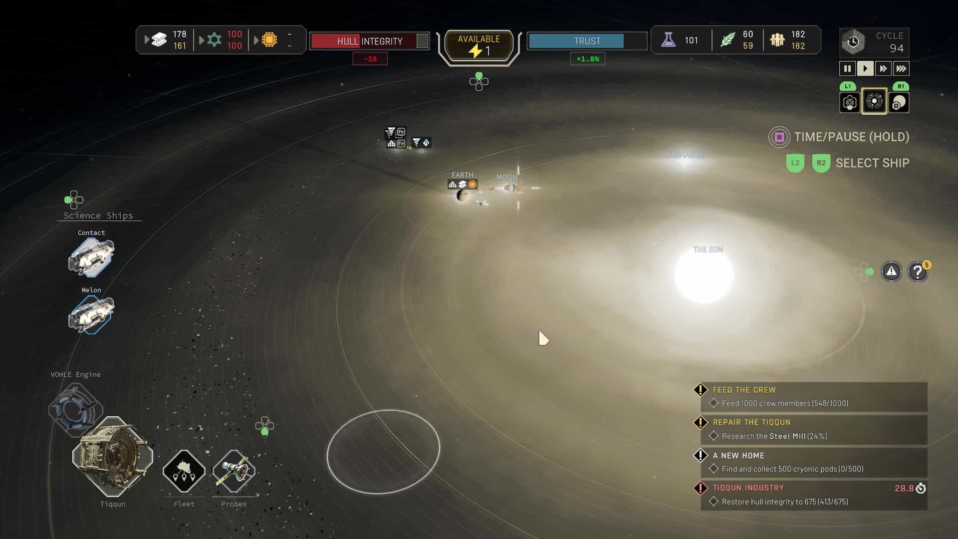 Sama przestrzeń kosmiczna nie jest może tak różnorodna jak w grach pokroju Stellaris, ale ma unikalny klimat — pustkę, samotność, grozę. Do tego dochodzi świetnie dobrana ścieżka dźwiękowa, która znakomicie buduje nastrój. Sygnalizuje ona też zmiany tempa rozgrywki: od spokojnych momentów planowania po dramatyczne chwile kryzysów i katastrof.